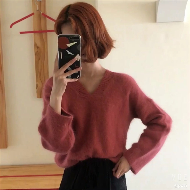 2018秋冬新款chic復古百搭慵懶風純色簡約百搭馬海毛套頭毛衣女潮