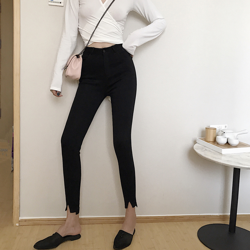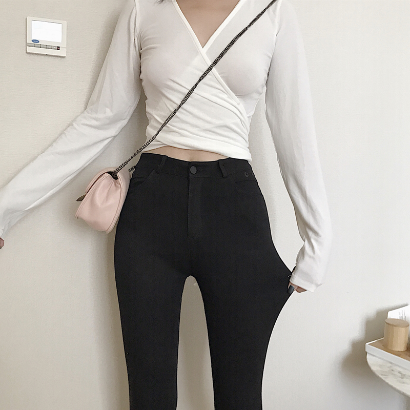 / 2018秋裝新款韓版黑色打底褲外穿高腰顯瘦小腳鉛筆褲緊身九分褲女
