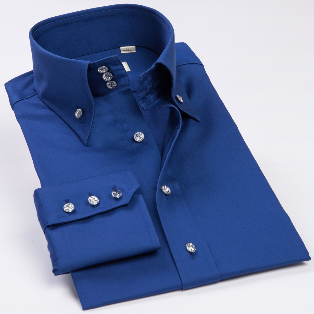 絲光棉高領襯衫男長袖修身韓版潮流帥氣青年男士襯衣商務休閑