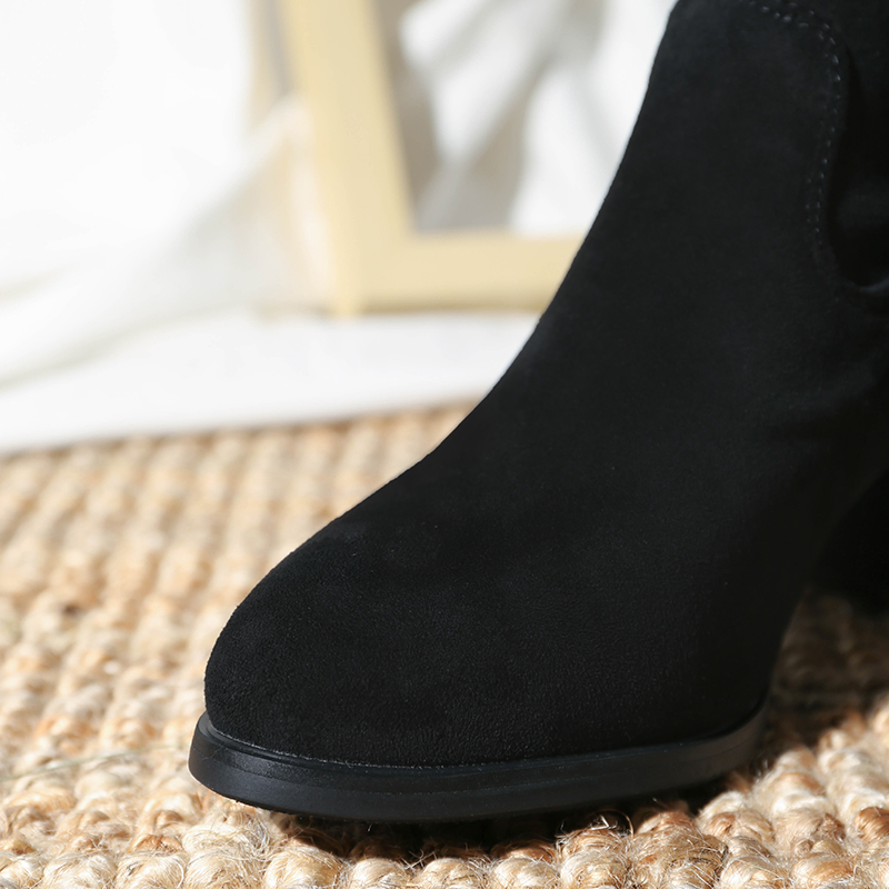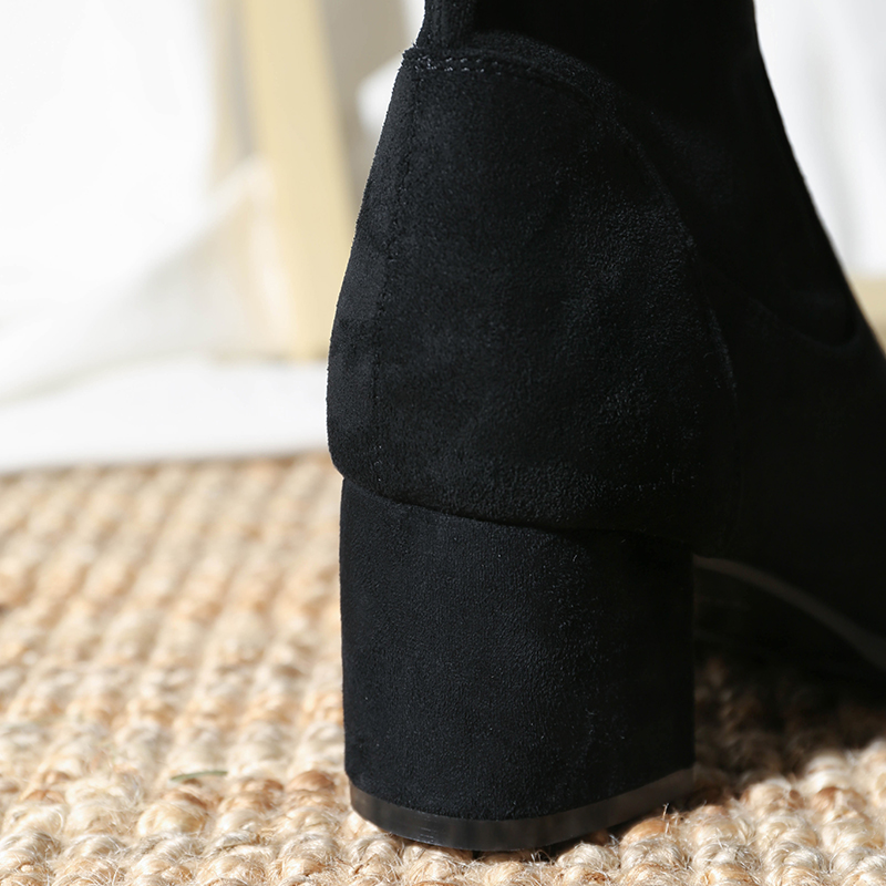 MG小象黑色尖頭過膝靴女2018新款時尚系帶高跟鞋冬季粗跟長筒靴子