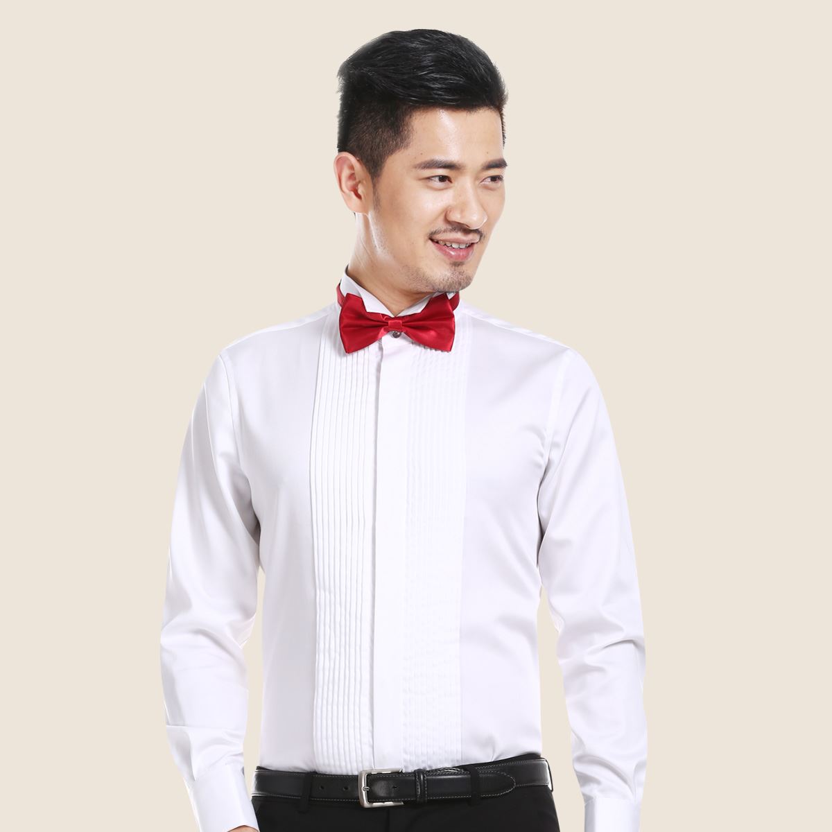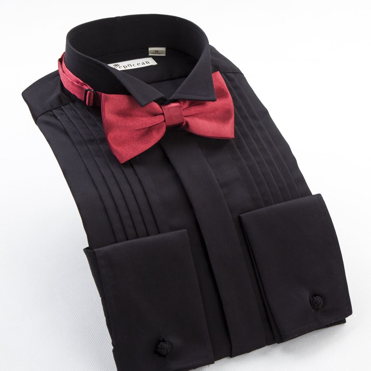 / 深海男士紅色襯衫長袖絲光棉燕子領法式伴郎禮服男新郎結婚襯衣