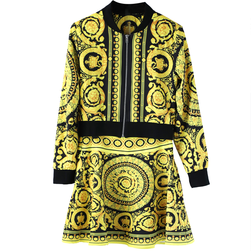時髦2018秋季新款印花時尚運動休閑套裝女上衣夾克半身裙兩件套潮