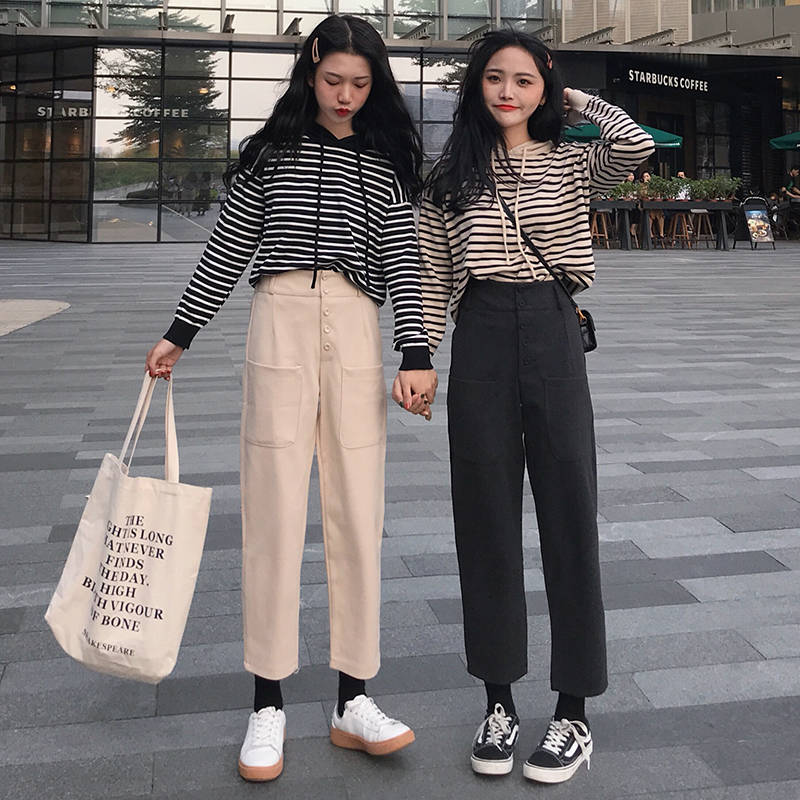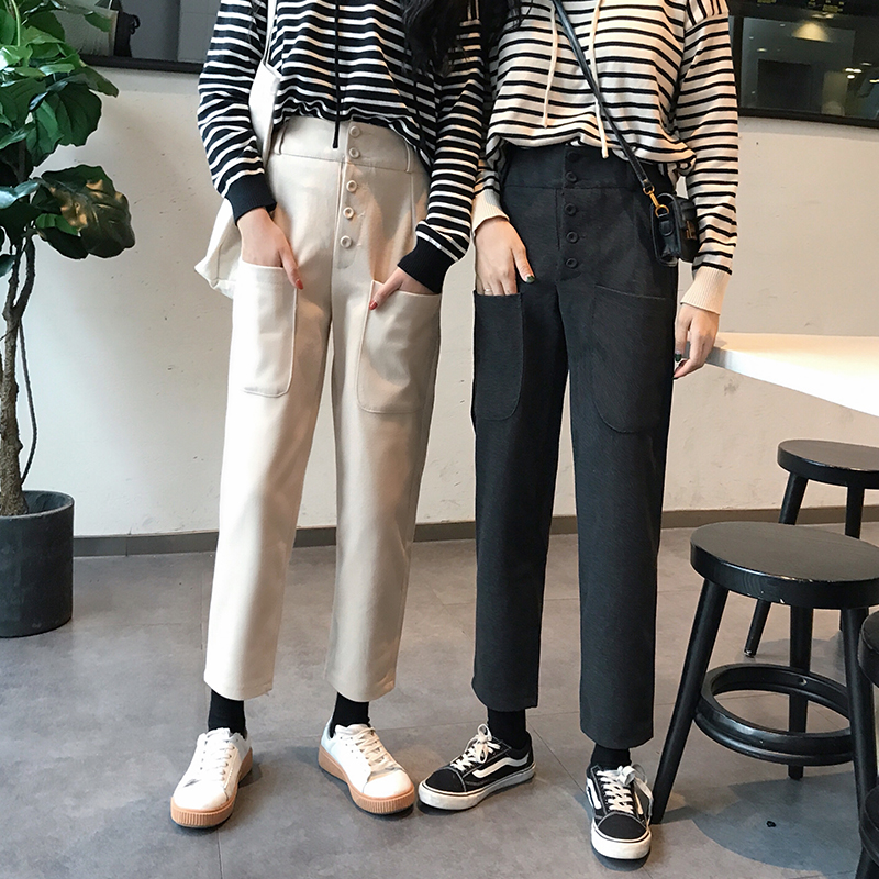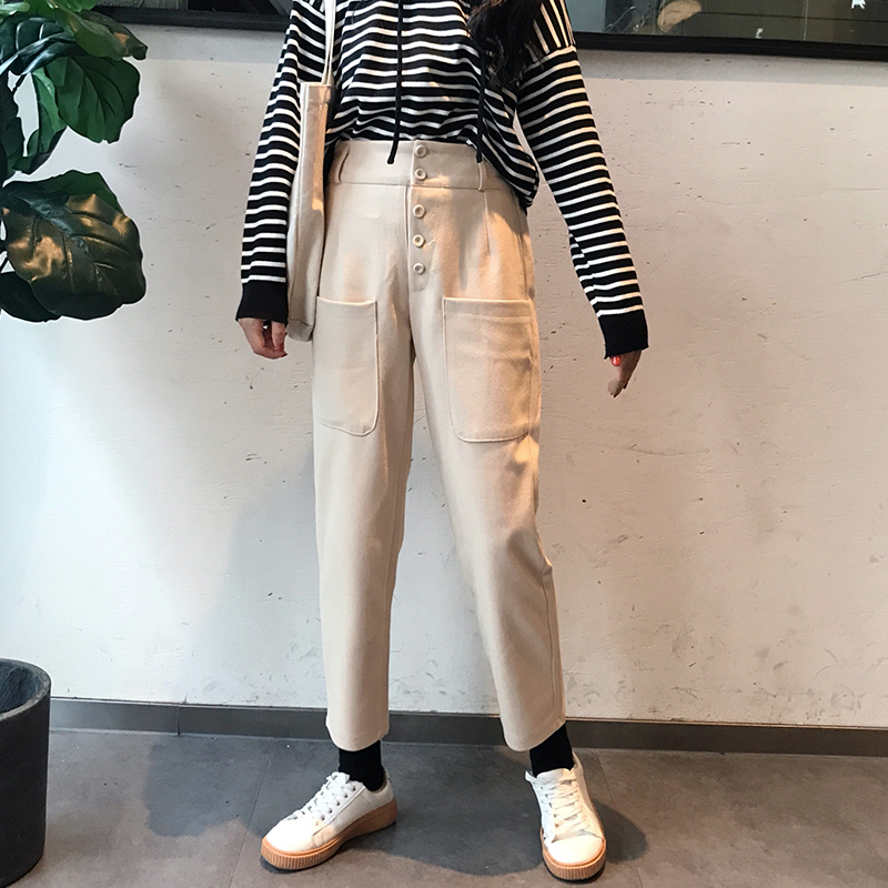 / 秋冬女裝韓版寬松加厚呢子休閑褲高腰直筒褲闊腿褲九分褲學生褲子