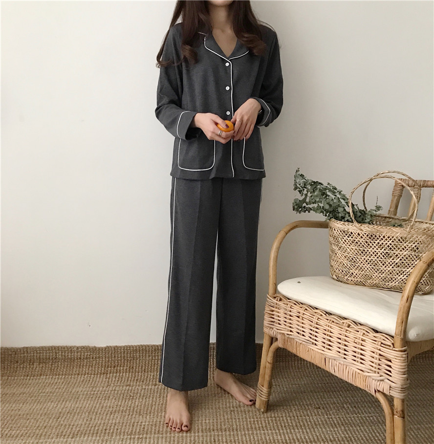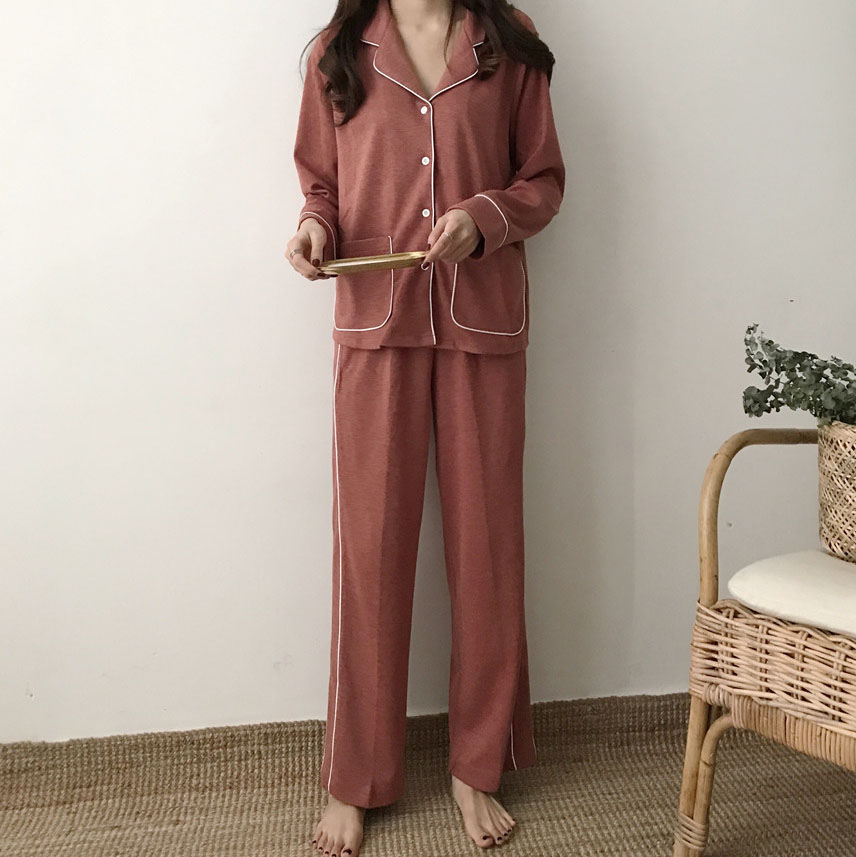 家居服套裝親膚舒適木耳邊時尚加厚保暖連衣裙上衣+長褲居家套裝