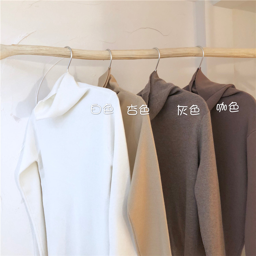 / 秋冬新款純色百搭高領堆堆領針織衫上衣chic復古簡約長袖打底衫女
