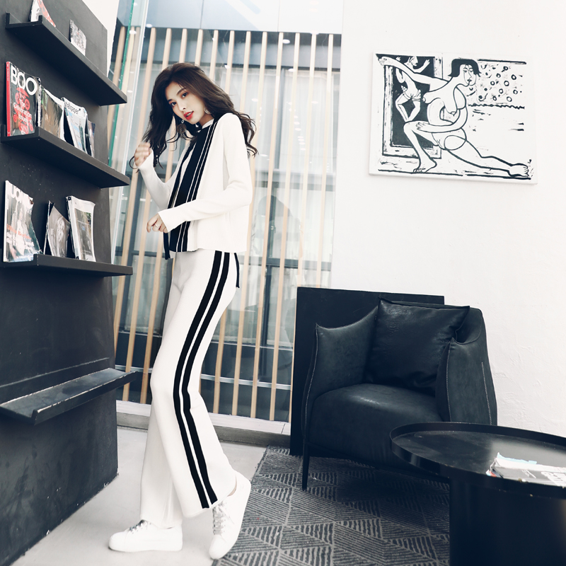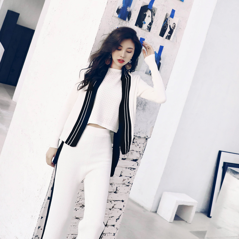 / 針織套裝女秋季輕熟風御姐范女裝小清新心機墜感闊腿褲毛衣三件套