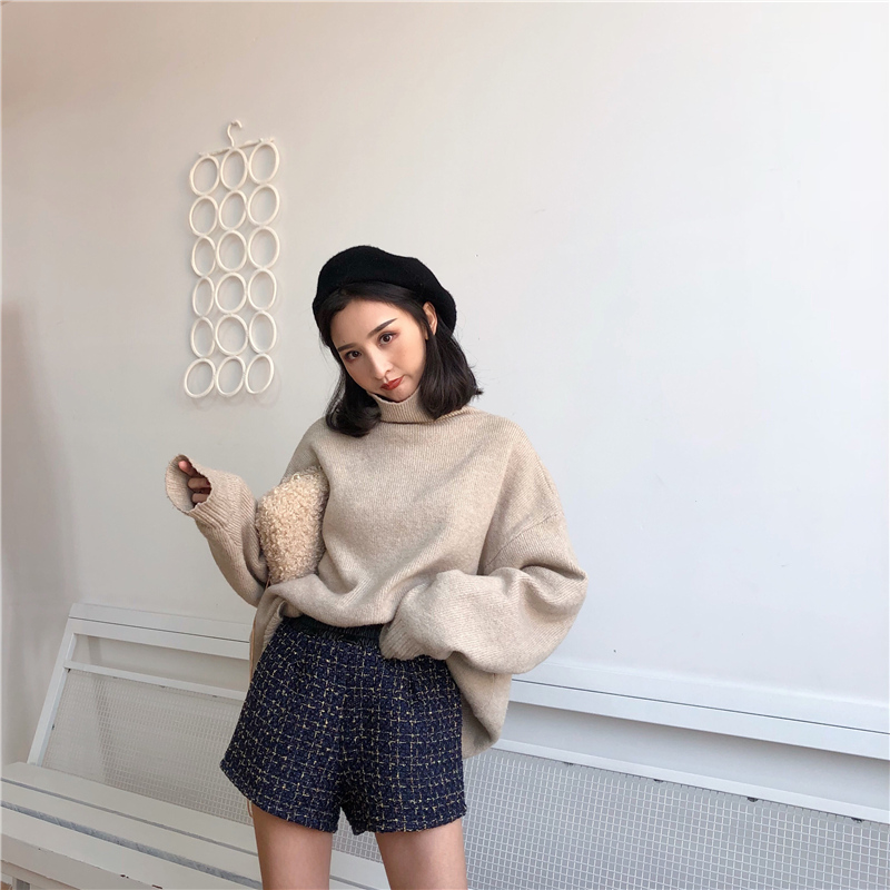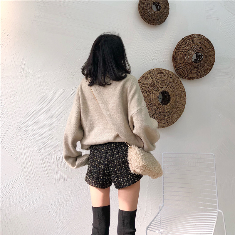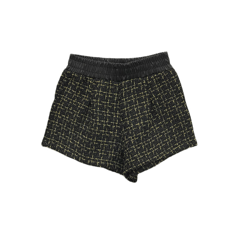 港味chic秋冬季新款褲子pu皮拼接格子粗花呢短褲女加絨寬松闊腿褲