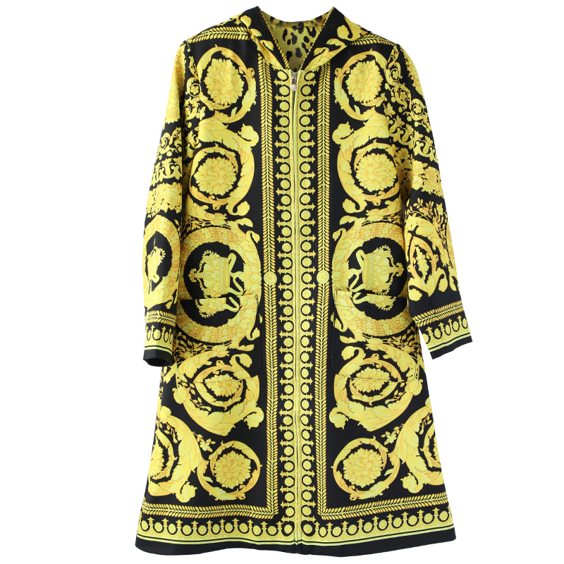 / 2018秋裝歐貨新款印花寬松chic復古休閑連帽外套潮風衣女中長款