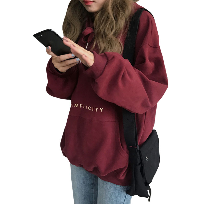 / 秋冬韓版中長款字母刺繡寬松抓絨加厚連帽套頭超火衛衣上衣外套女