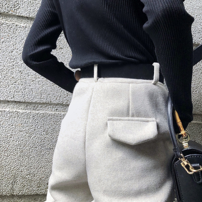 / 精神女生社會褲女冬裝2018新款高腰顯瘦毛呢西裝褲寬松休閑哈倫褲