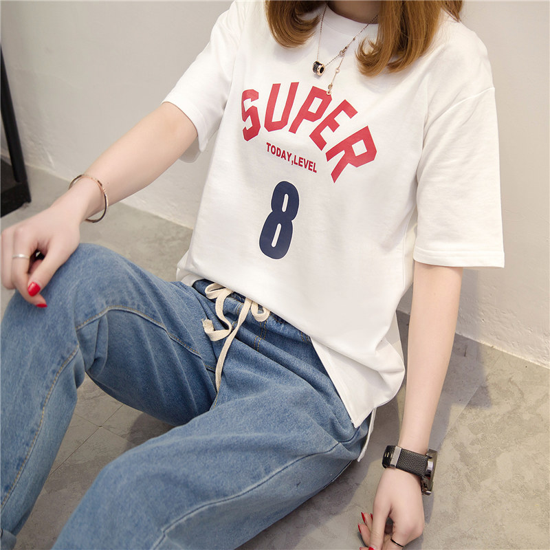 短袖上衣女夏新款女裝字母白色t恤女寬松韓版打底體恤衫百搭