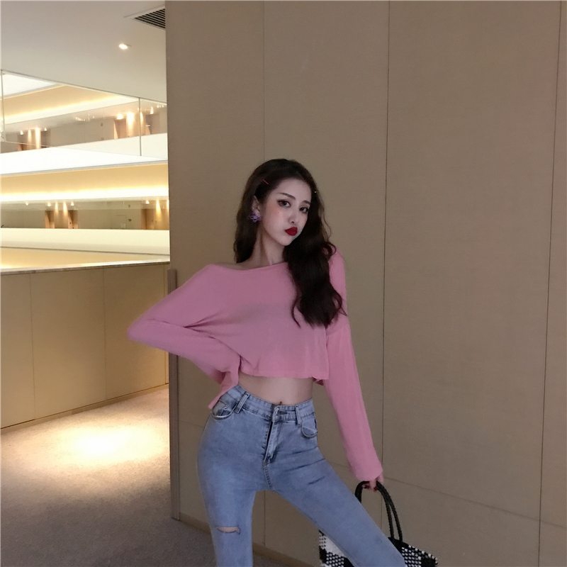 復古韓國chic風純色百搭防曬長袖上衣寬松t恤女2018夏季新款潮