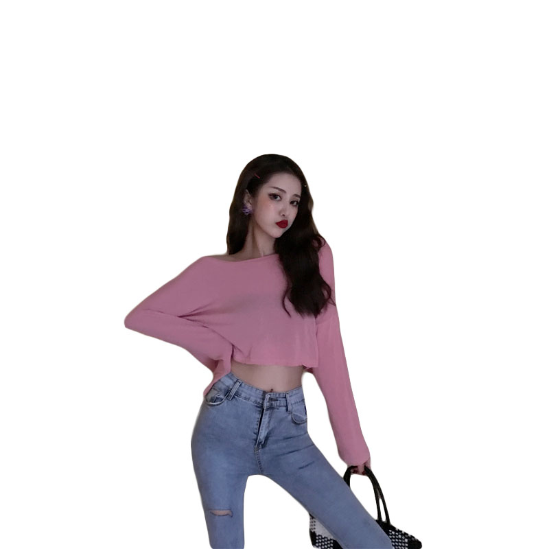 港味秋天上衣女時尚復古風修身顯瘦純色綁繩圓領百搭長袖打底T恤