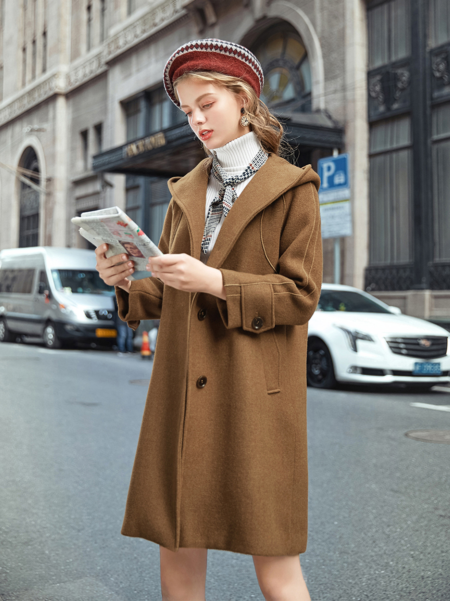 / MG小象連帽呢子大衣女中長款寬松2018新款復古學生冬季毛呢外套潮
