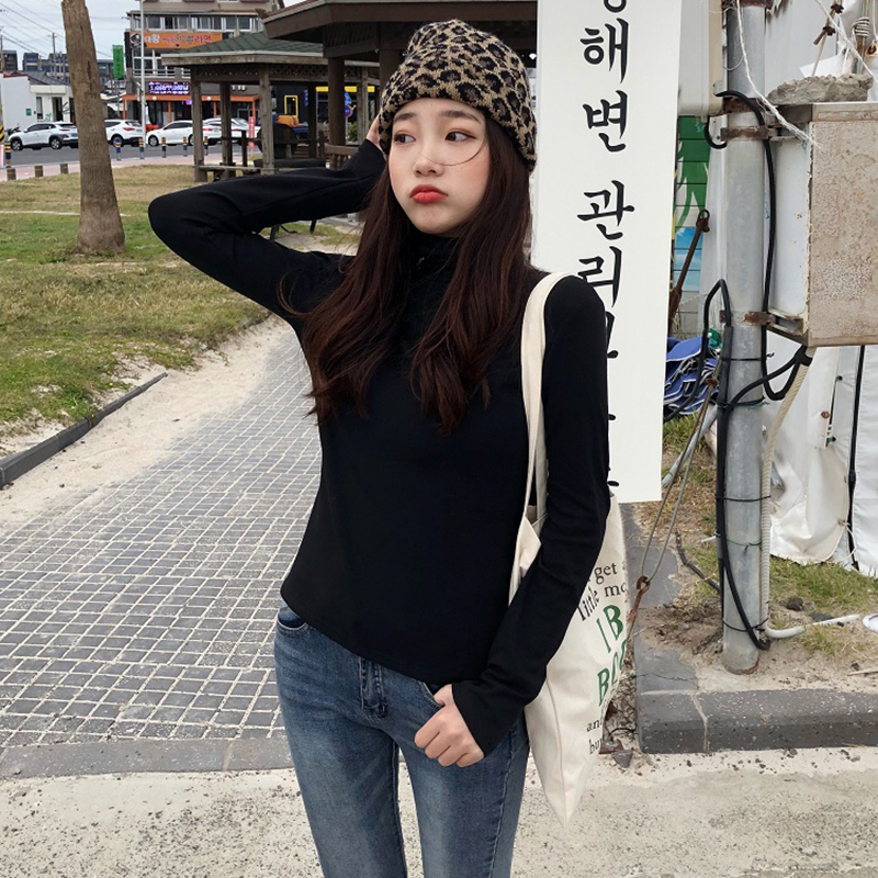 / 糖果色高領打底衫女秋冬裝2018新款學生韓版氣質修身顯瘦長袖T恤