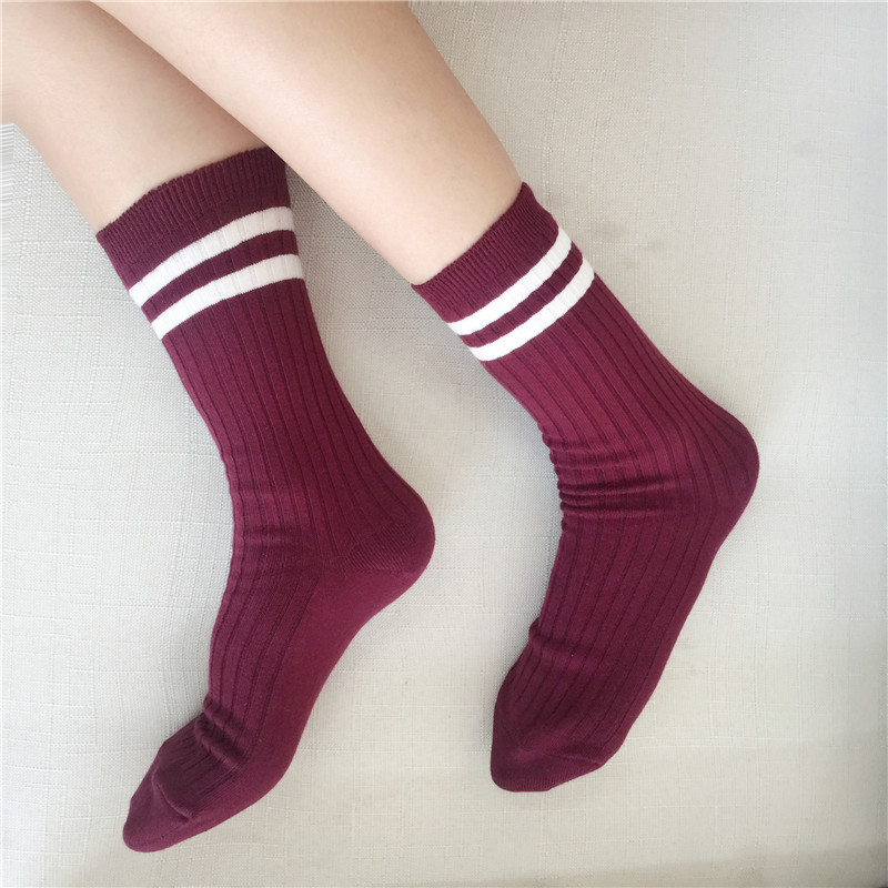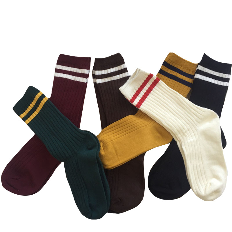/ 秋冬時尚學院風百搭個性條紋中筒襪棉襪學生吸濕排汗保暖襪子女士