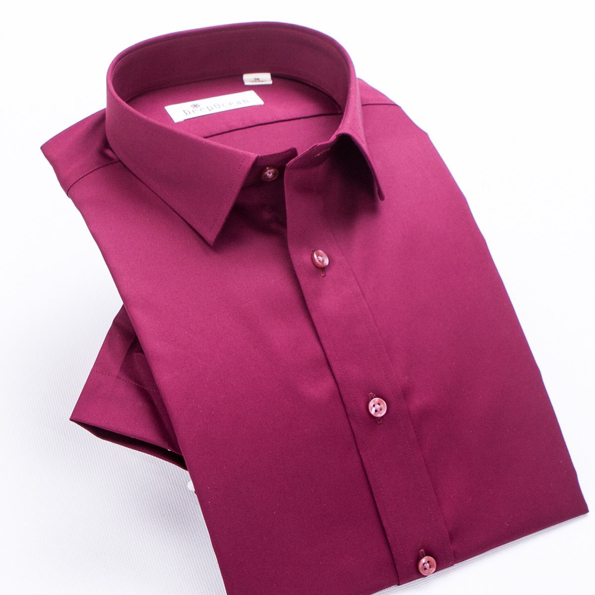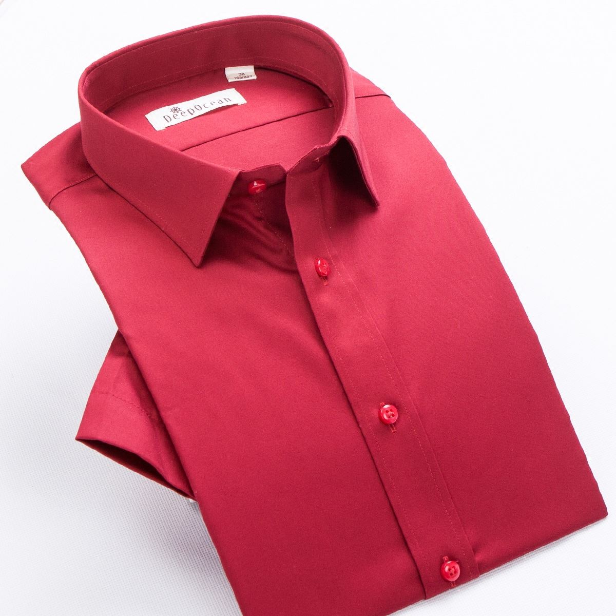 / 新款夏季結婚禮服短袖紅襯衫男裝寸衣絲光棉半袖男式純色襯衣