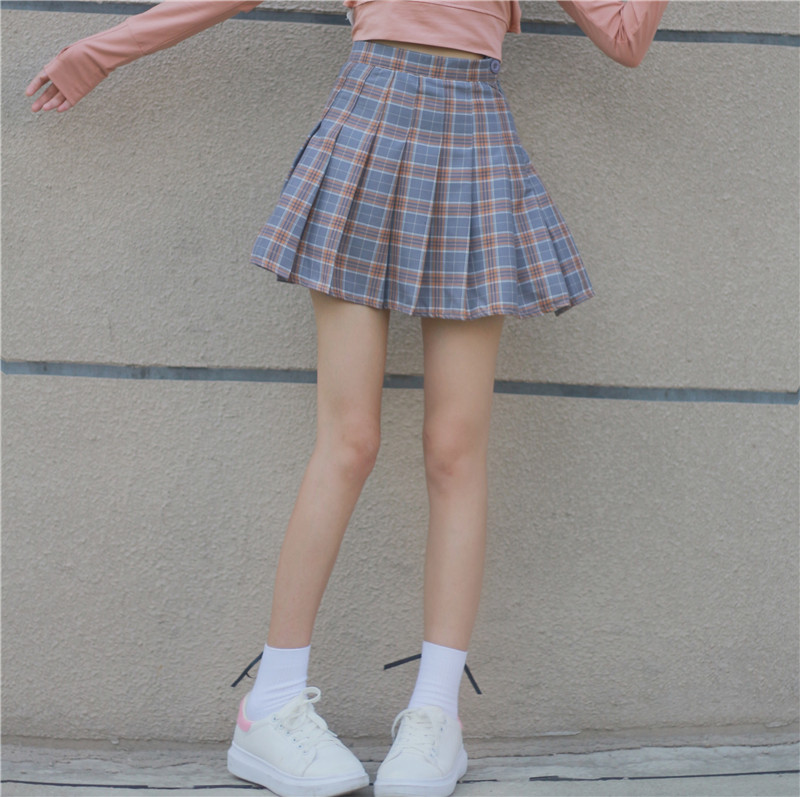 / 韓版秋裝女裝小清新格子半身裙高腰百褶裙顯瘦夏季學生A字裙短裙