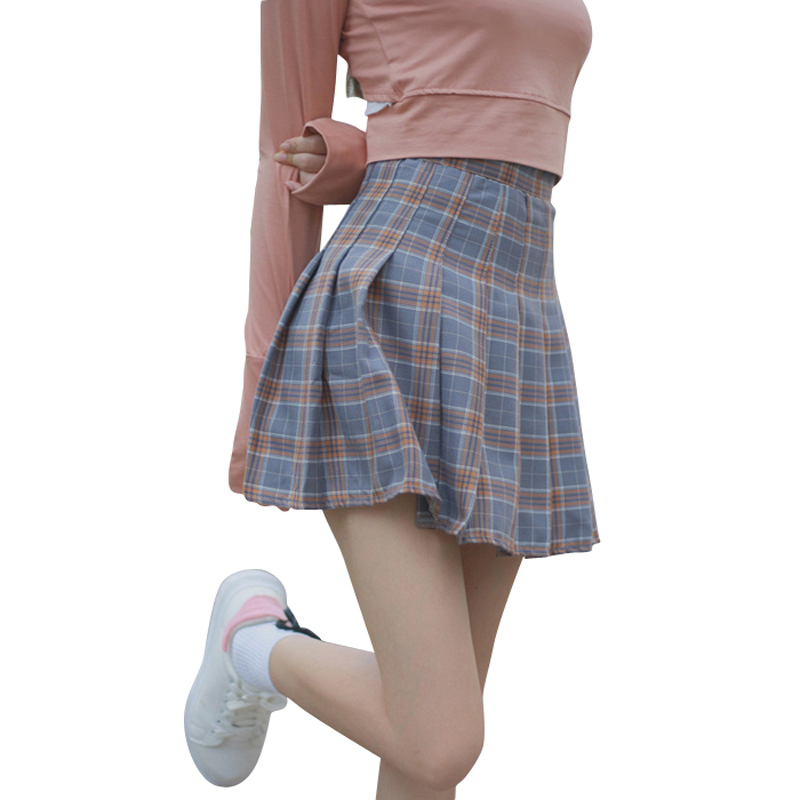 韓版秋裝女裝小清新格子半身裙高腰百褶裙顯瘦夏季學生A字裙短裙