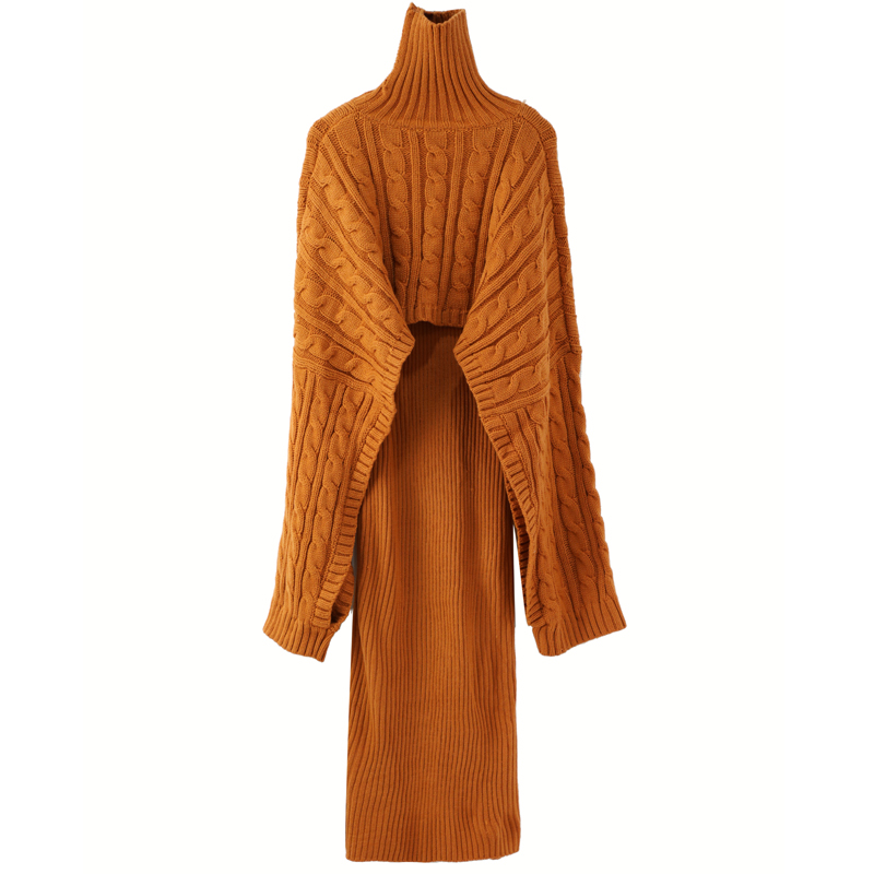 / 名媛氣質歐洲站時尚背心針織開叉包臀連衣裙斗篷寬松毛衣外套裝秋
