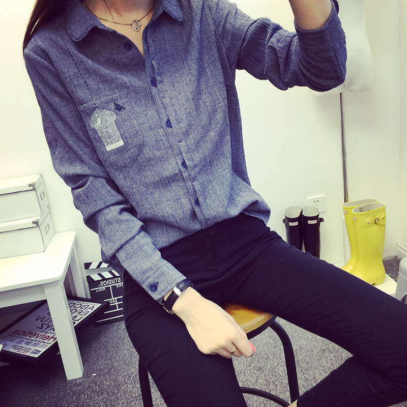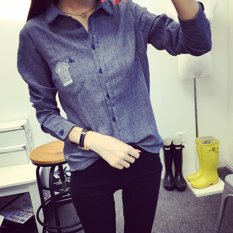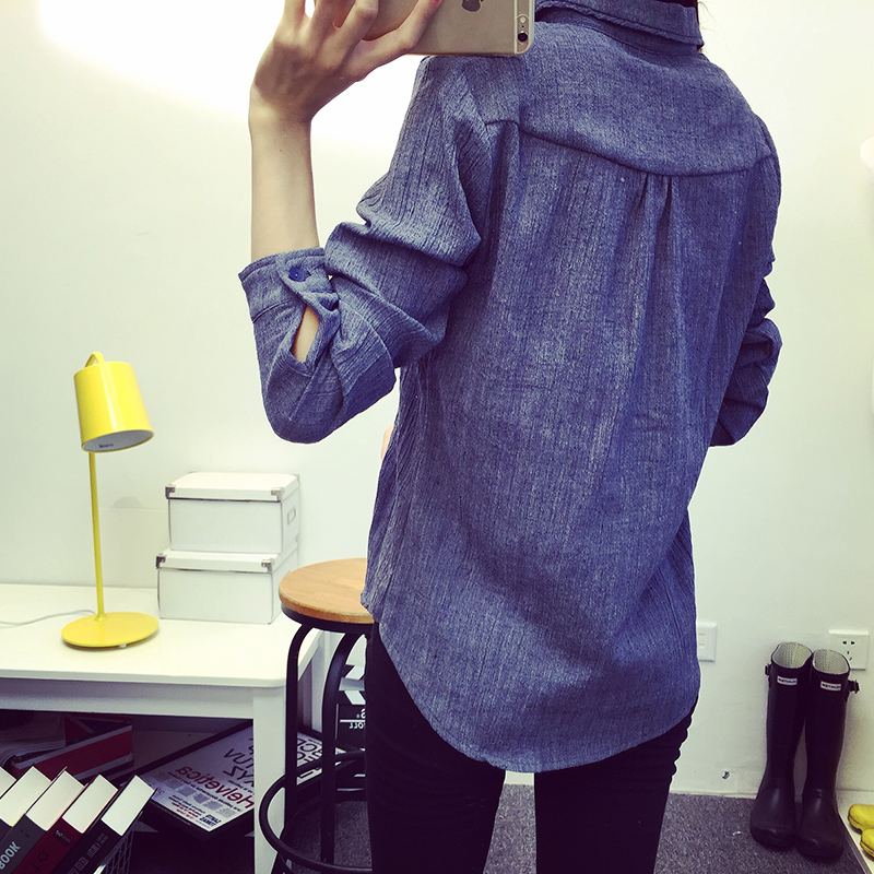/ 秋裝新款韓版女裝休閑牛仔色長袖襯衫寬松打底衫女襯衣