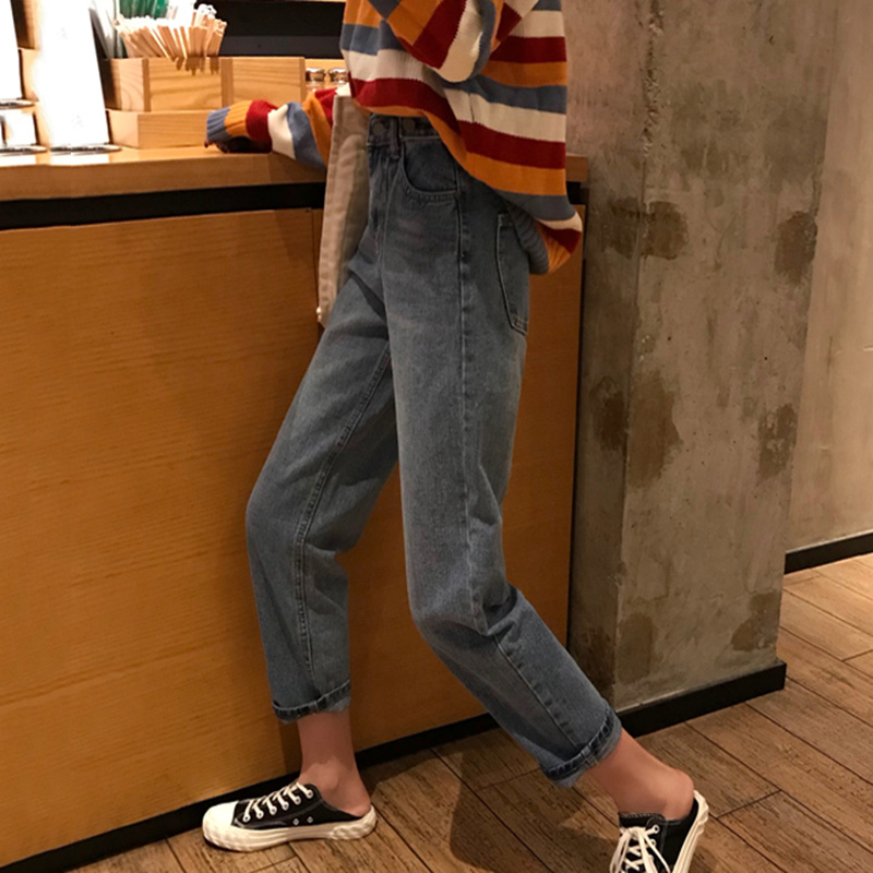 / 秋裝女2018新款港味復古寬松顯瘦直筒褲子學生高腰休閑九分牛仔褲