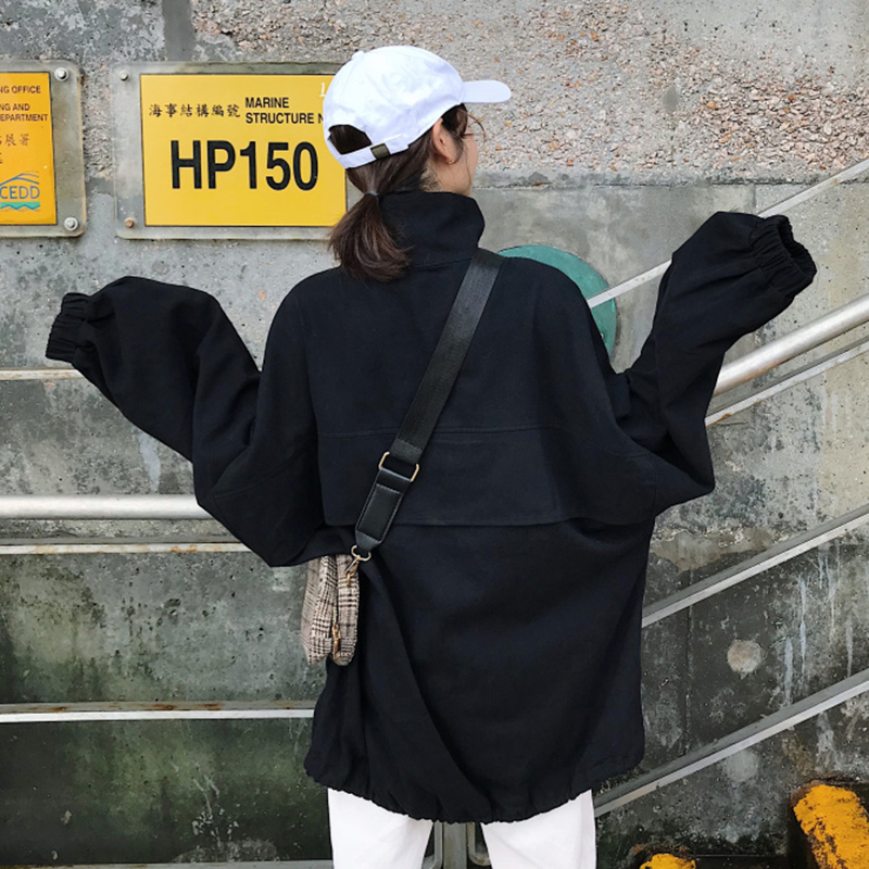 / 秋裝女新款韓版學生泡泡長袖印花衛衣寬松立領上衣帥氣中長外套潮