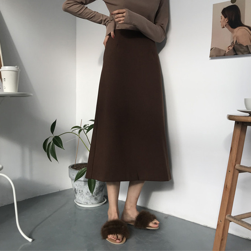 簡約黑裙子秋裝女2018新款韓版時尚高腰半身裙學生休閑中長A字裙