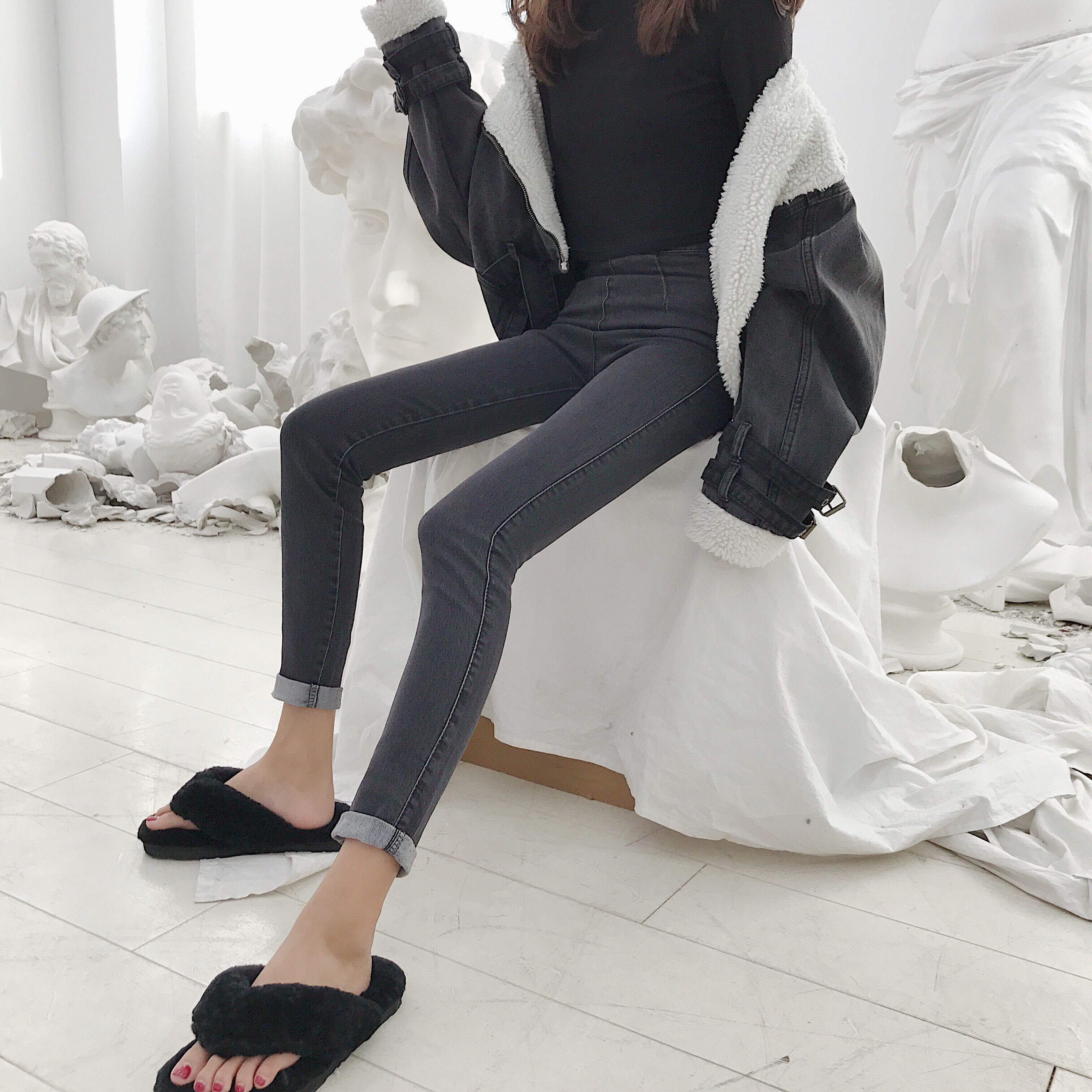 / 韓國時尚chic新款加絨拼接牛仔外套女秋冬寬松百搭機車長袖開衫潮