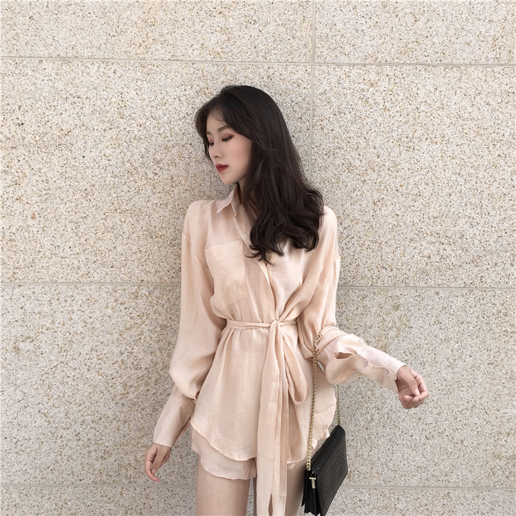 / 慵懶風新款秋季女韓版系帶不規則襯衣短褲時尚套裝復古chic兩件套