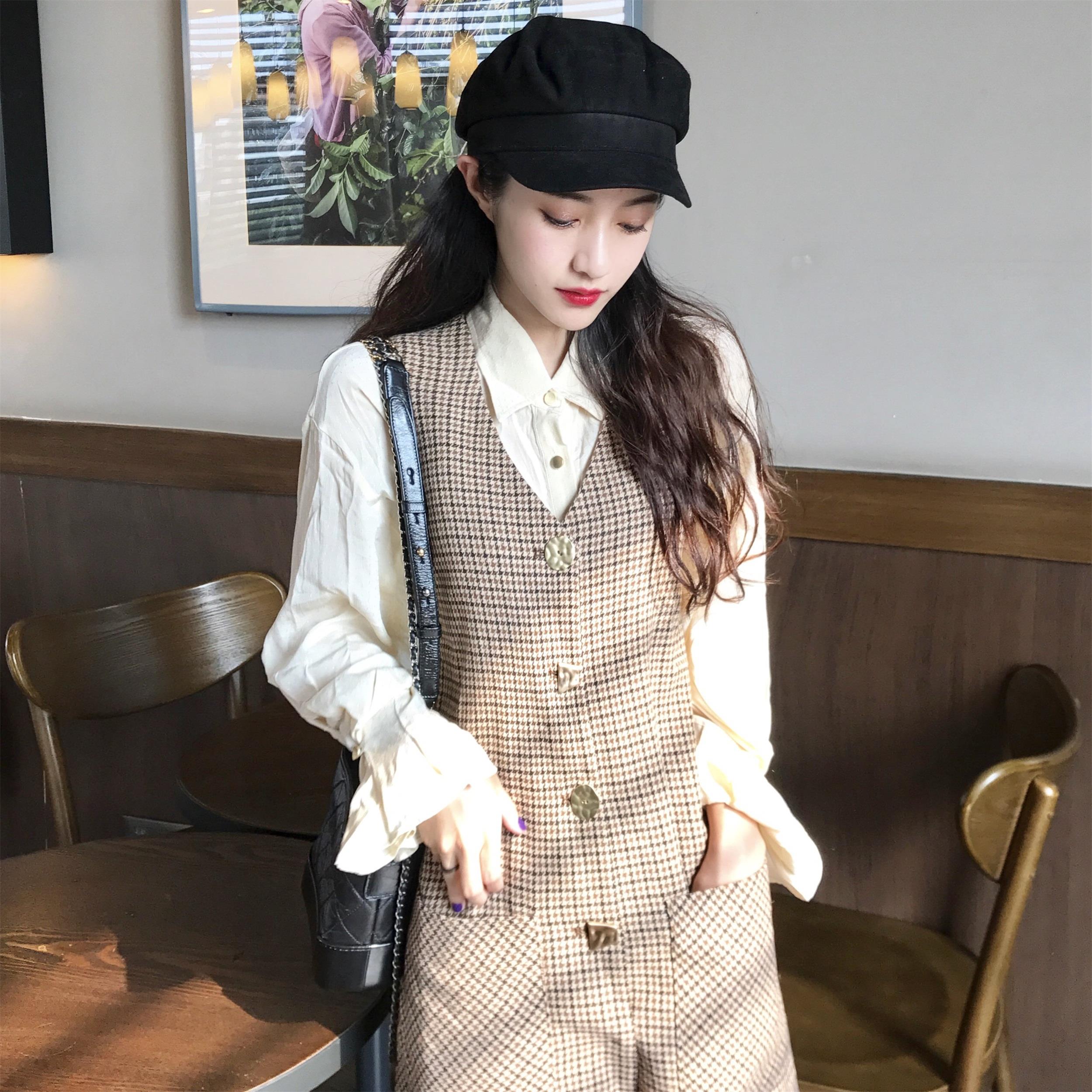 / 2018秋冬新款韓版時尚套裝網紅休閑襯衫千鳥格背心裙氣質兩件套女