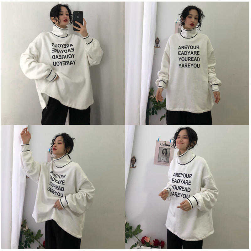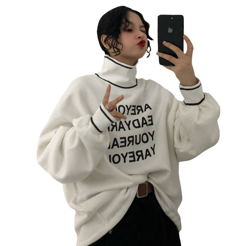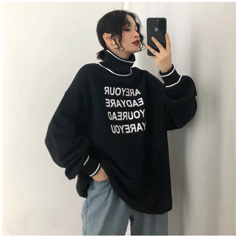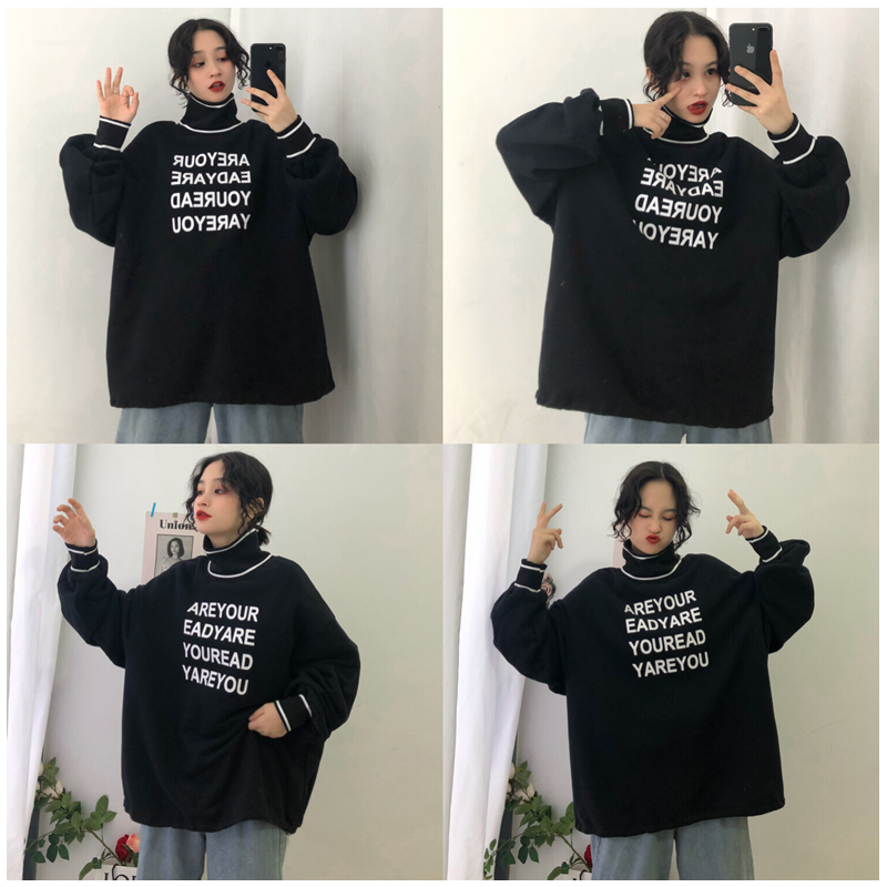 2018新款秋冬女裝韓版寬松慵懶風港風字母高領套頭衛衣上衣外套潮