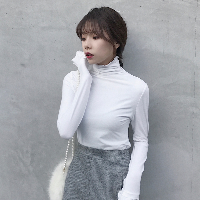 初秋上衣韓版修身顯瘦百搭長袖打底衫女T恤氣質高領親膚打底Tee潮