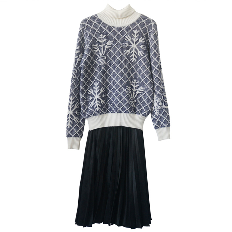 名媛氣質2018秋冬新款淑女裝高領針織衫毛衣絲絨褶皺半身裙套裝潮