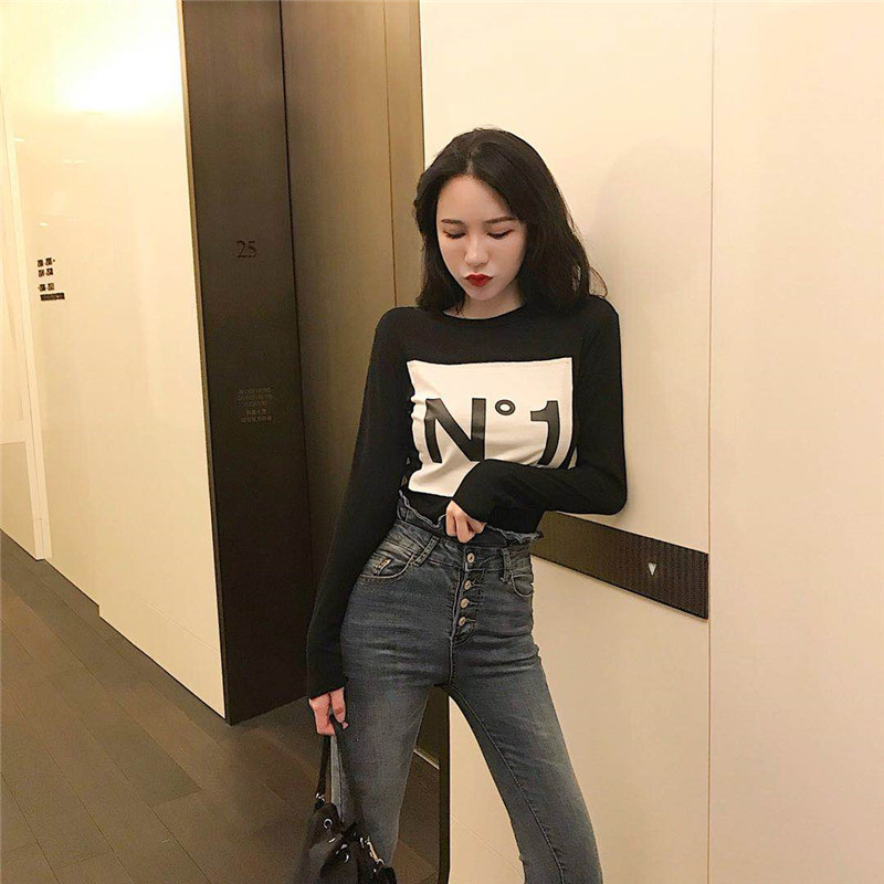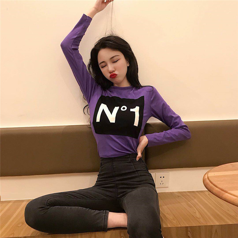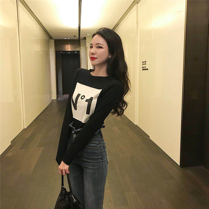 / 新款韓版打底衫復古修身時尚休閑字母印花百搭T恤chic早秋上衣女