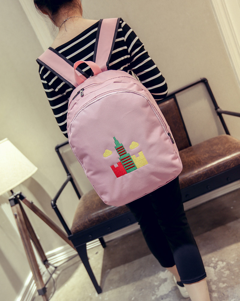 韓國ulzzang刺繡城堡帆布雙肩包 假如我有一座城文藝風情侶書包