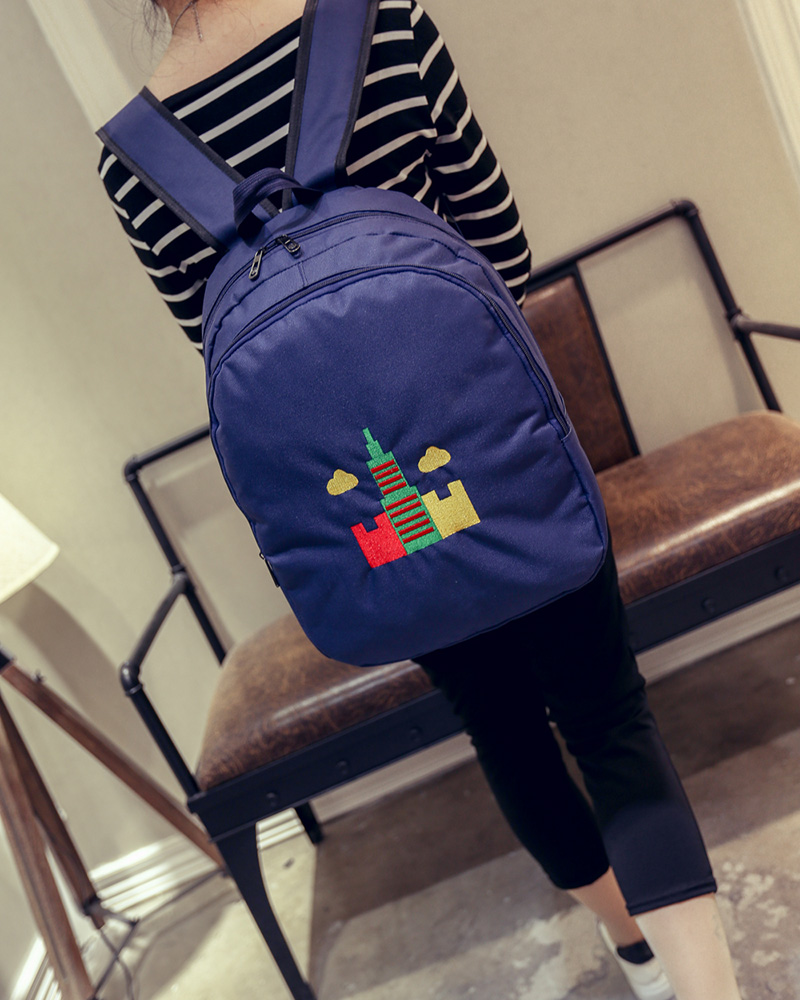 / 韓國ulzzang刺繡城堡帆布雙肩包 假如我有一座城文藝風情侶書包