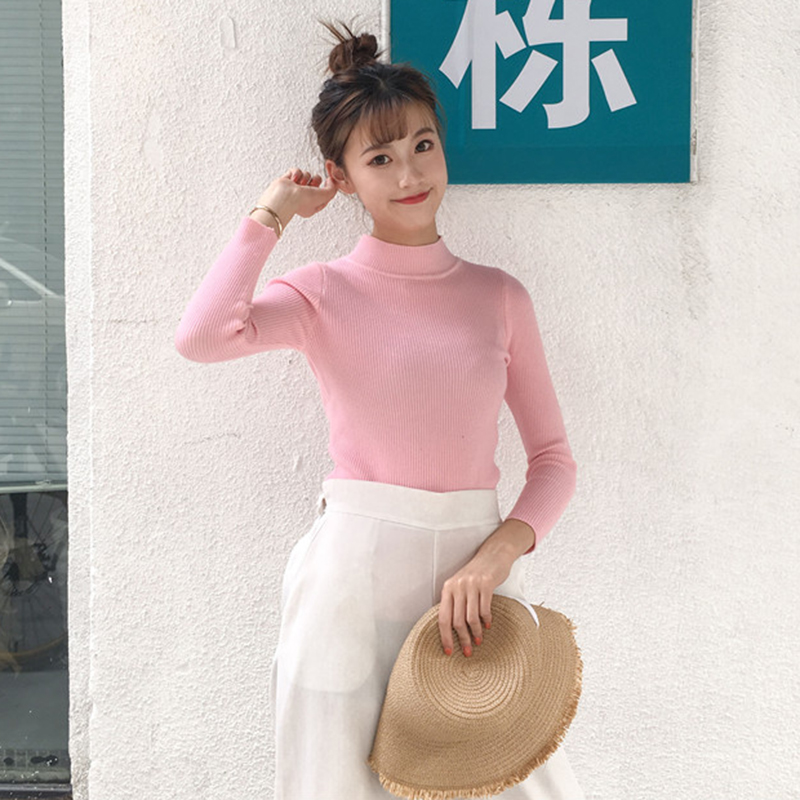 / 秋裝女2018新款韓版基礎款修身長袖針織衫學生半高領黑色打底上衣