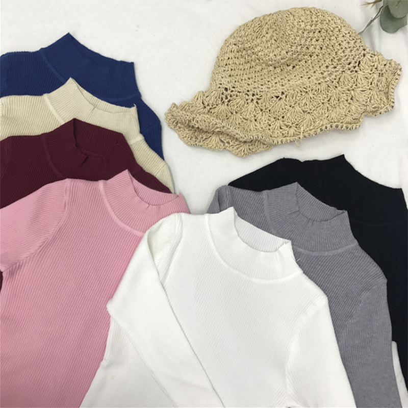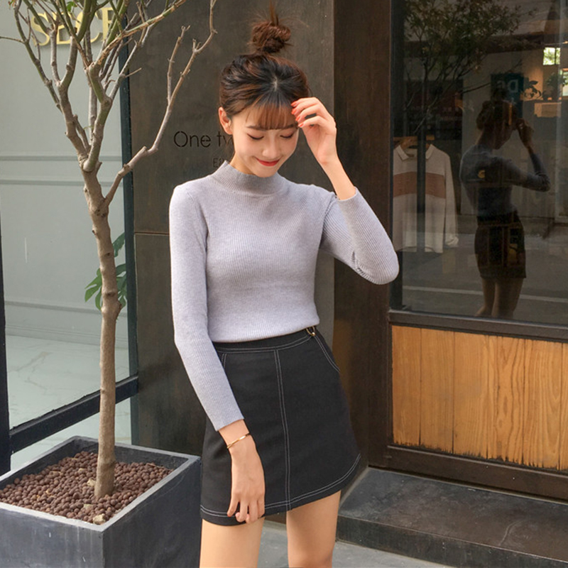 秋裝女2018新款韓版基礎款修身長袖針織衫學生半高領黑色打底上衣