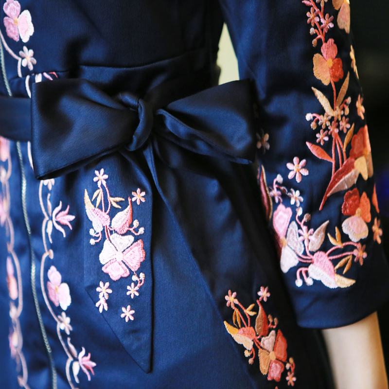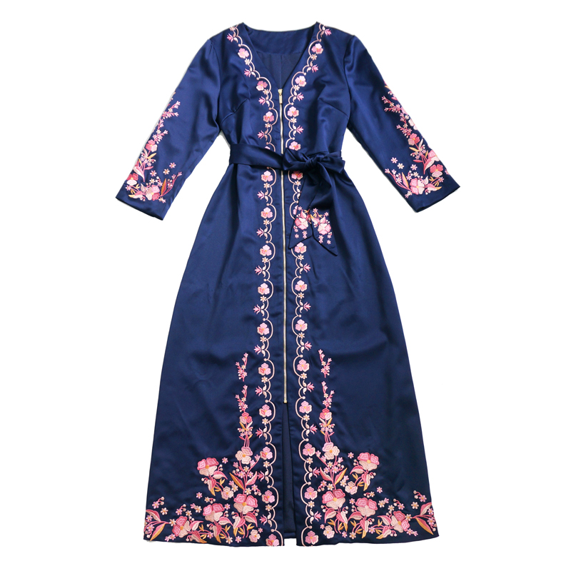 / 復古民族風2018春季新款時尚氣質顯瘦秋裝繡花女裝連衣裙中長款潮