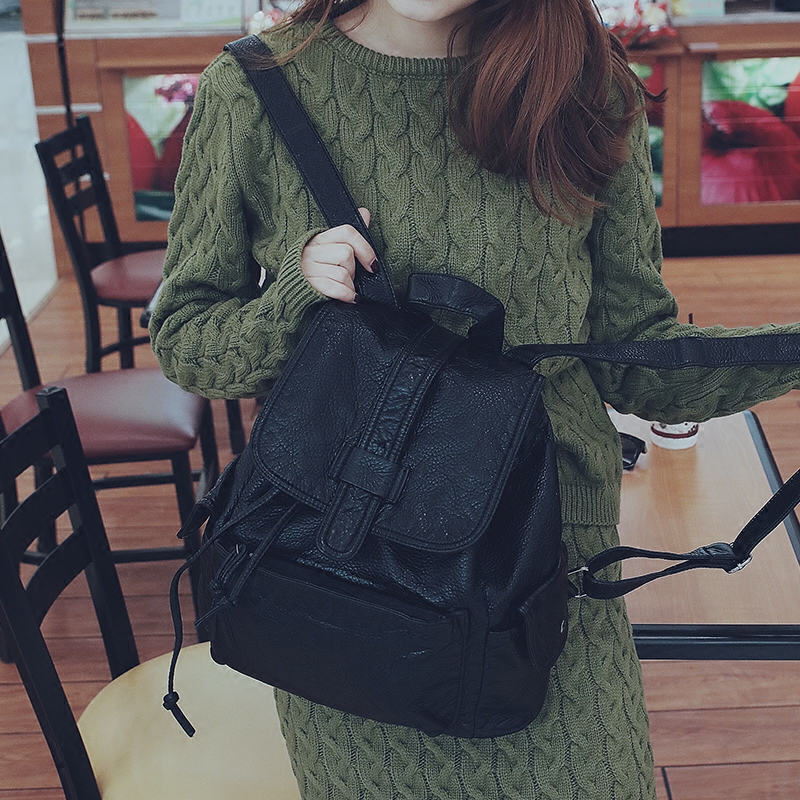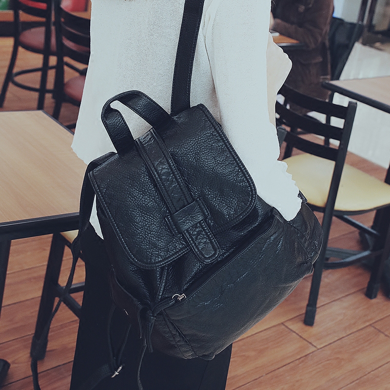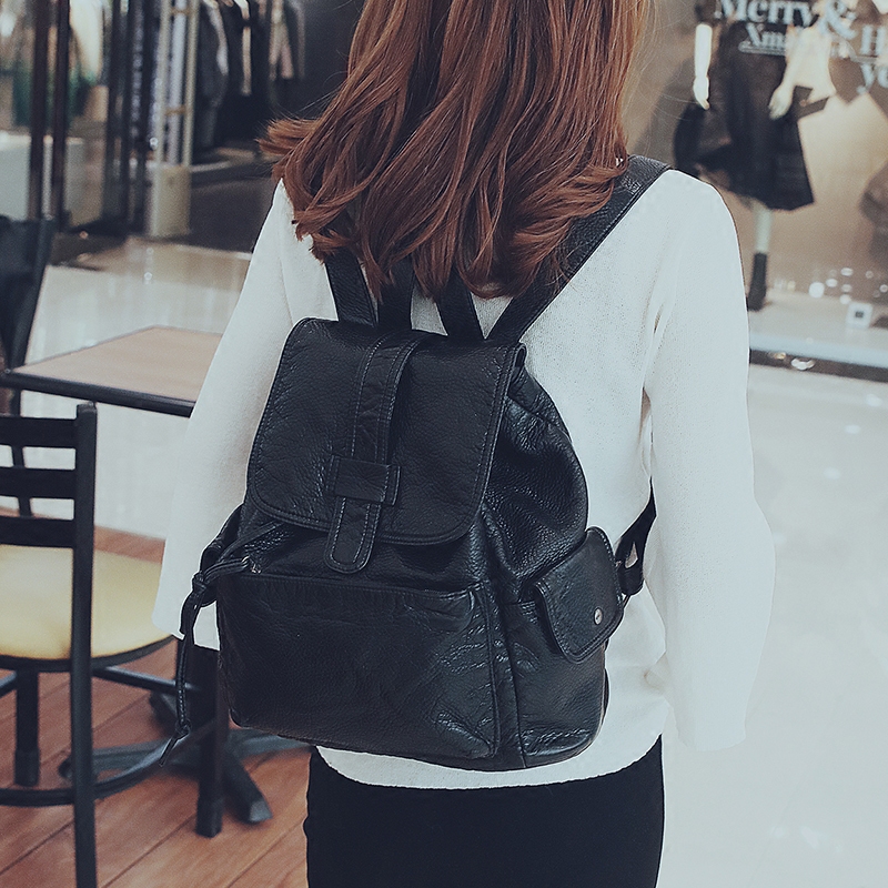 / 雙肩背包女韓版潮新款水洗皮pu雙肩包學院風時尚百搭學生書包