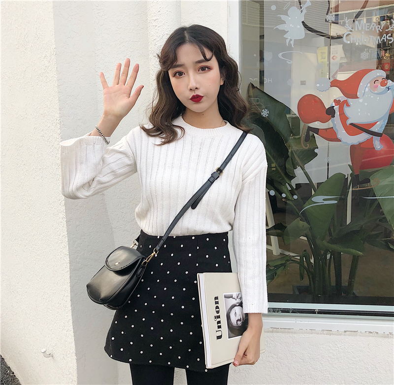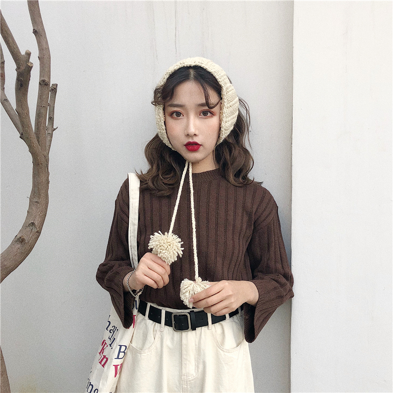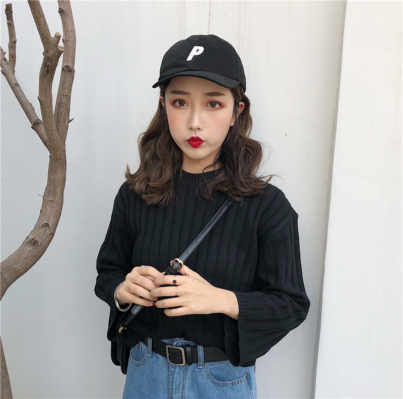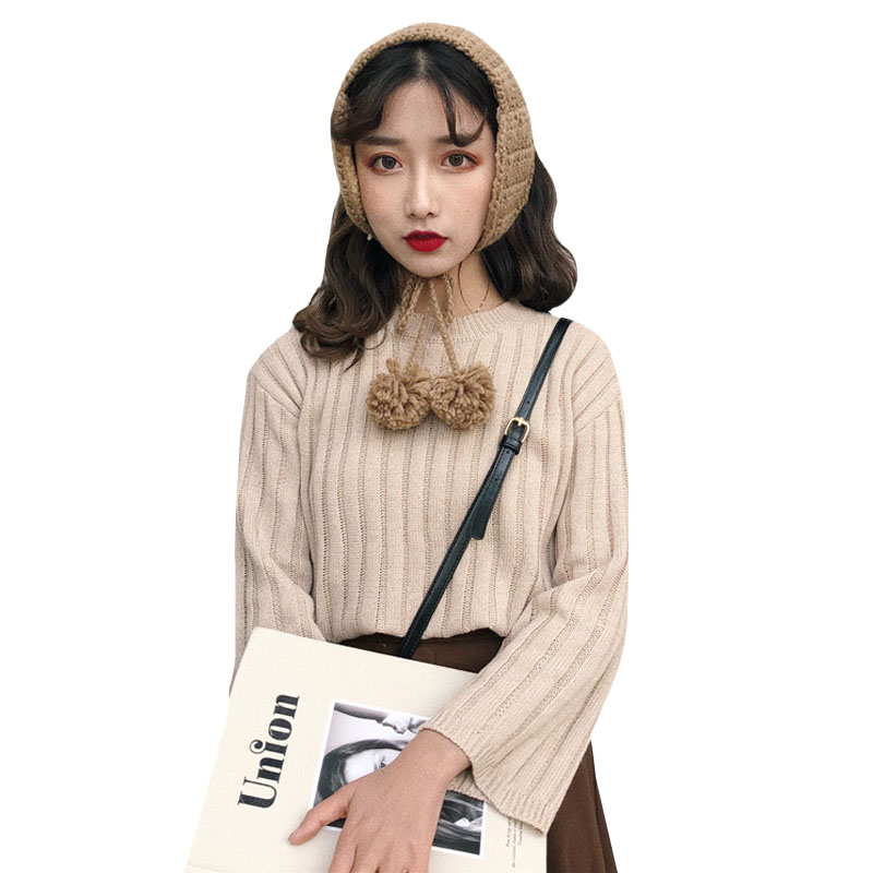/ 秋冬女裝韓版chic復古坑條寬松純色網紅毛衣打底衫套頭針織衫上衣