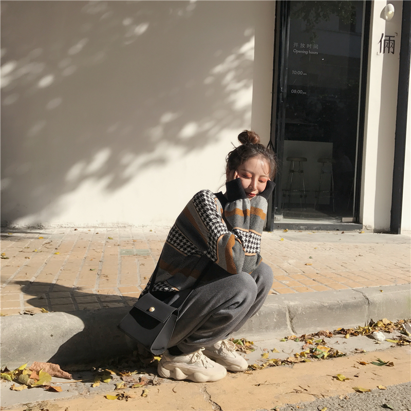 / 網紅同款包芯紗寬松針織上衣+百搭針織蘿卜褲