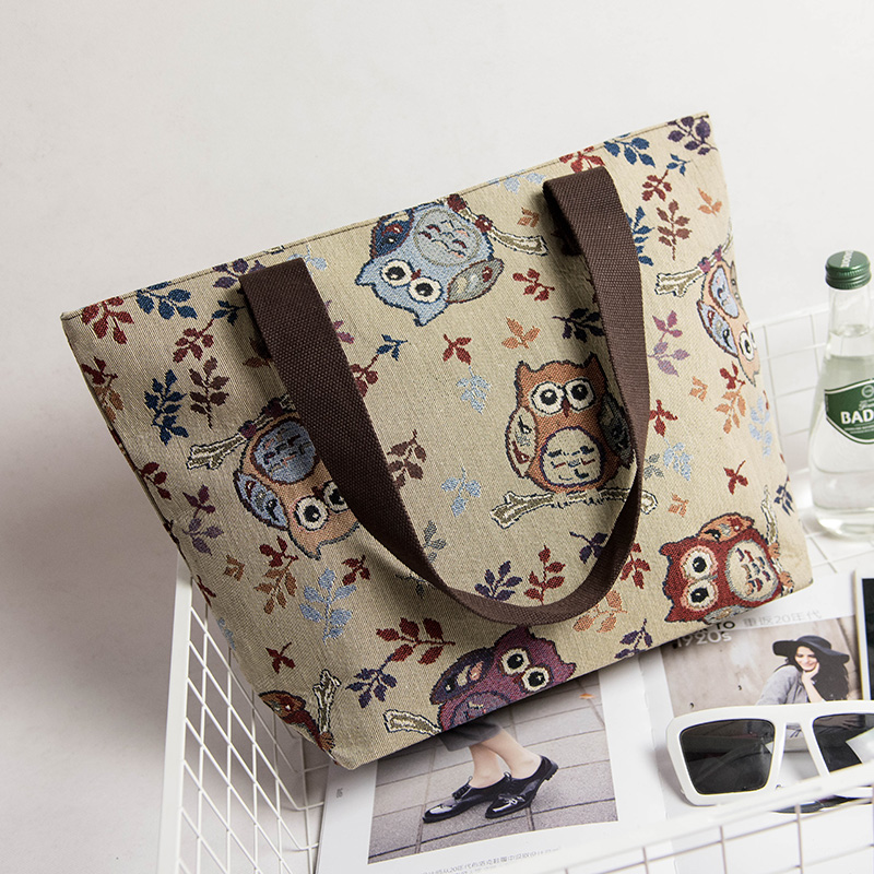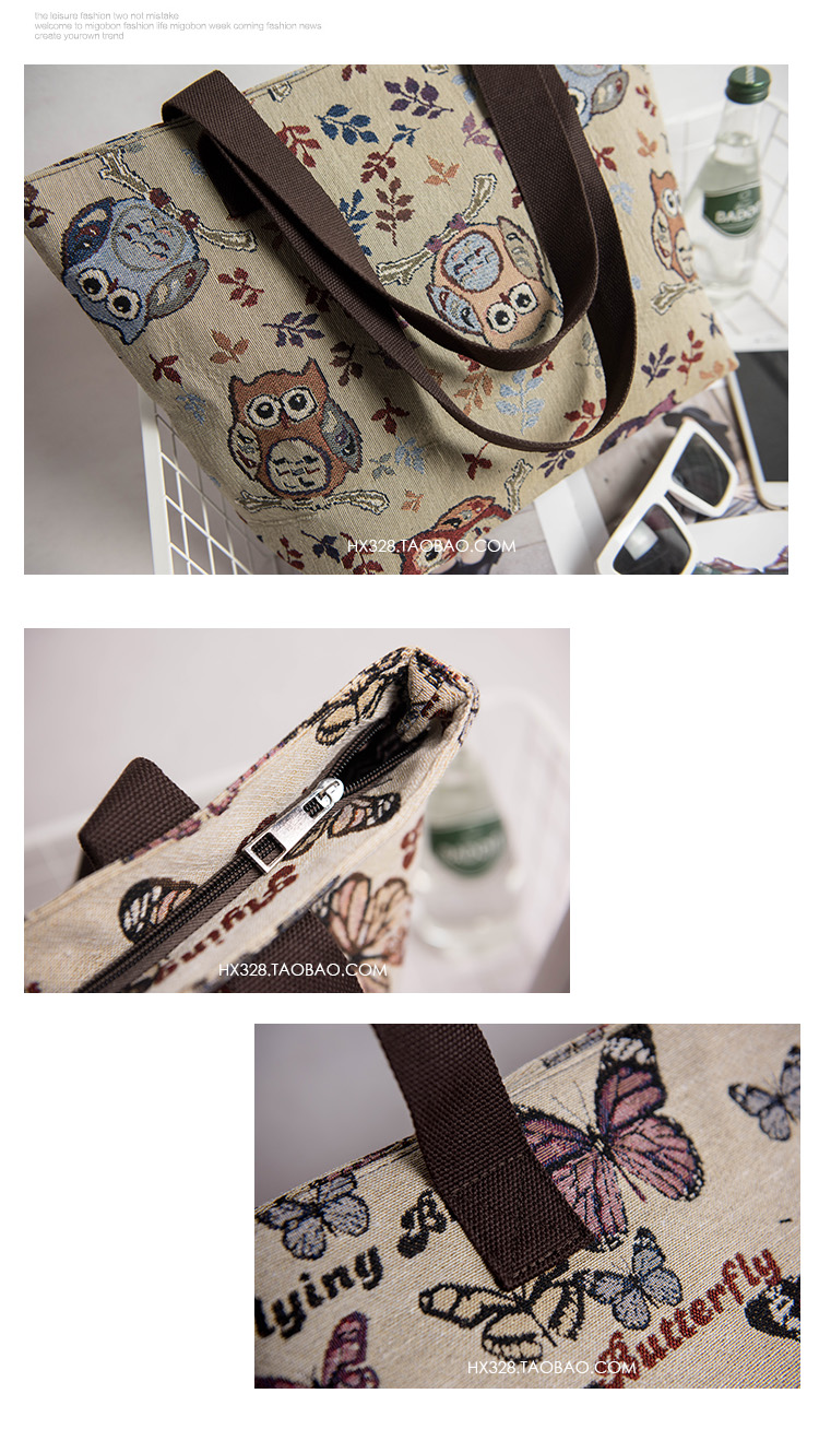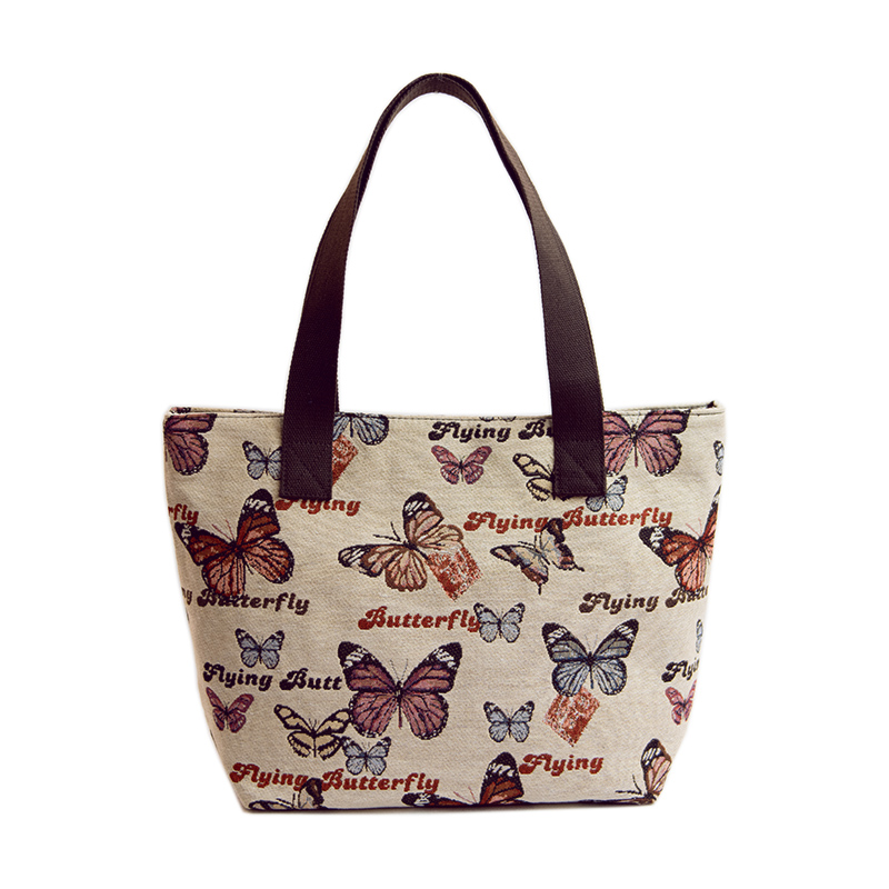 / 新款韓版女包帆布包蝴蝶圖案時尚布包單肩包休閑手提大包包潮
