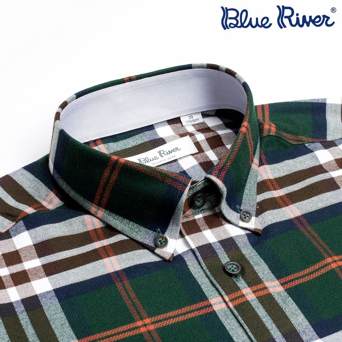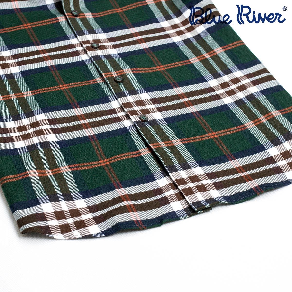 / 藍河男士彩色格紋襯衫男長袖修身2018新品格子秋棉質保暖襯衣