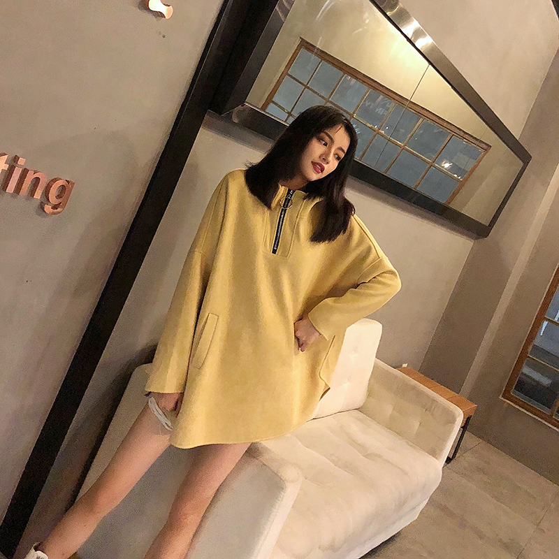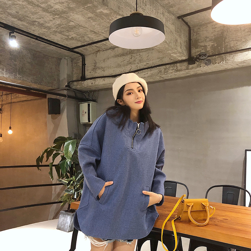 / 慵懶風寬松純色復古韓版套頭拉鏈連帽衛衣女2018新款大碼顯瘦上衣