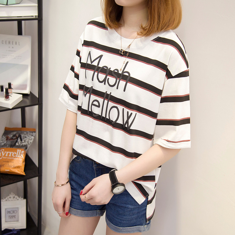 夏裝新款女裝條紋t恤女短袖寬松上衣女夏韓版打底體恤衫百搭