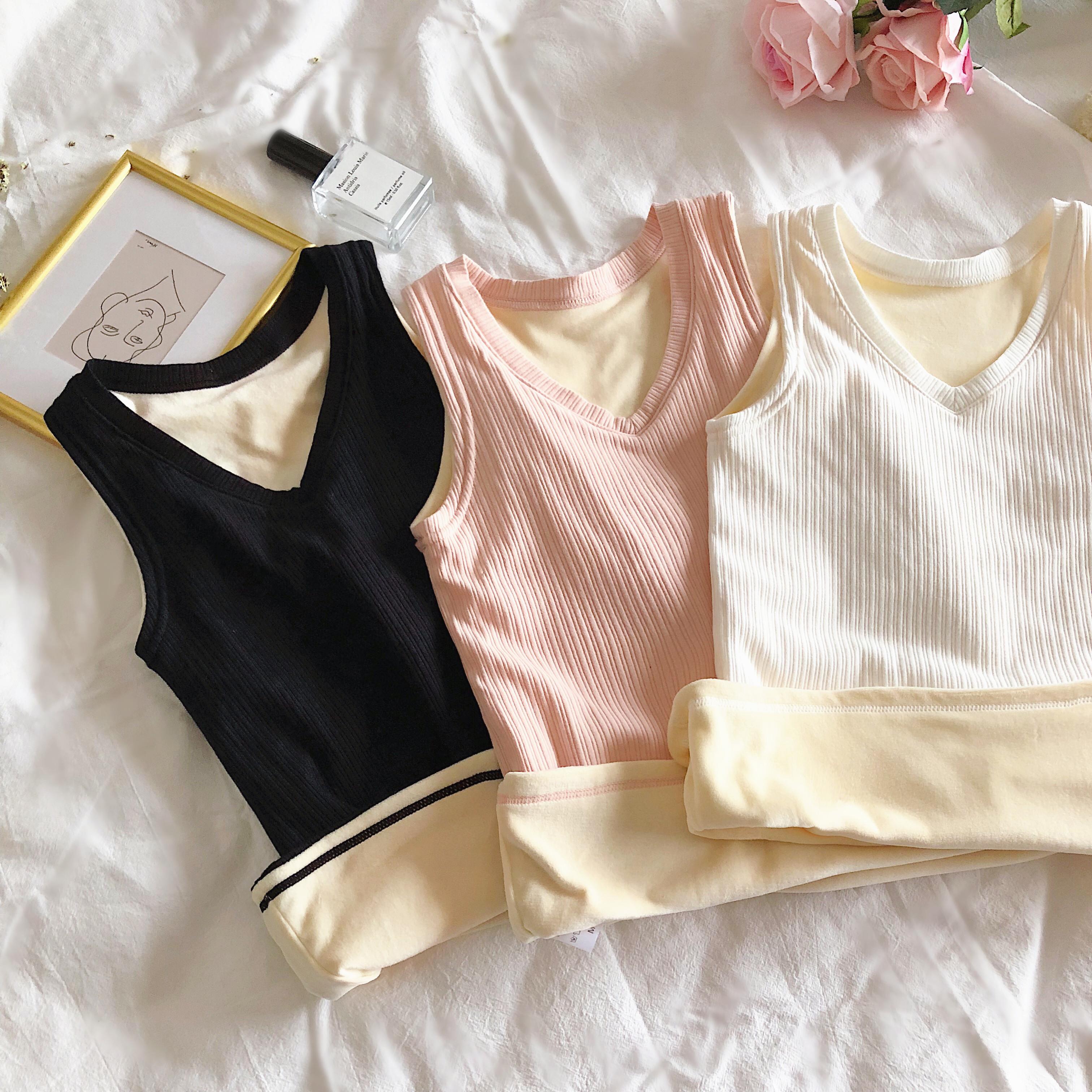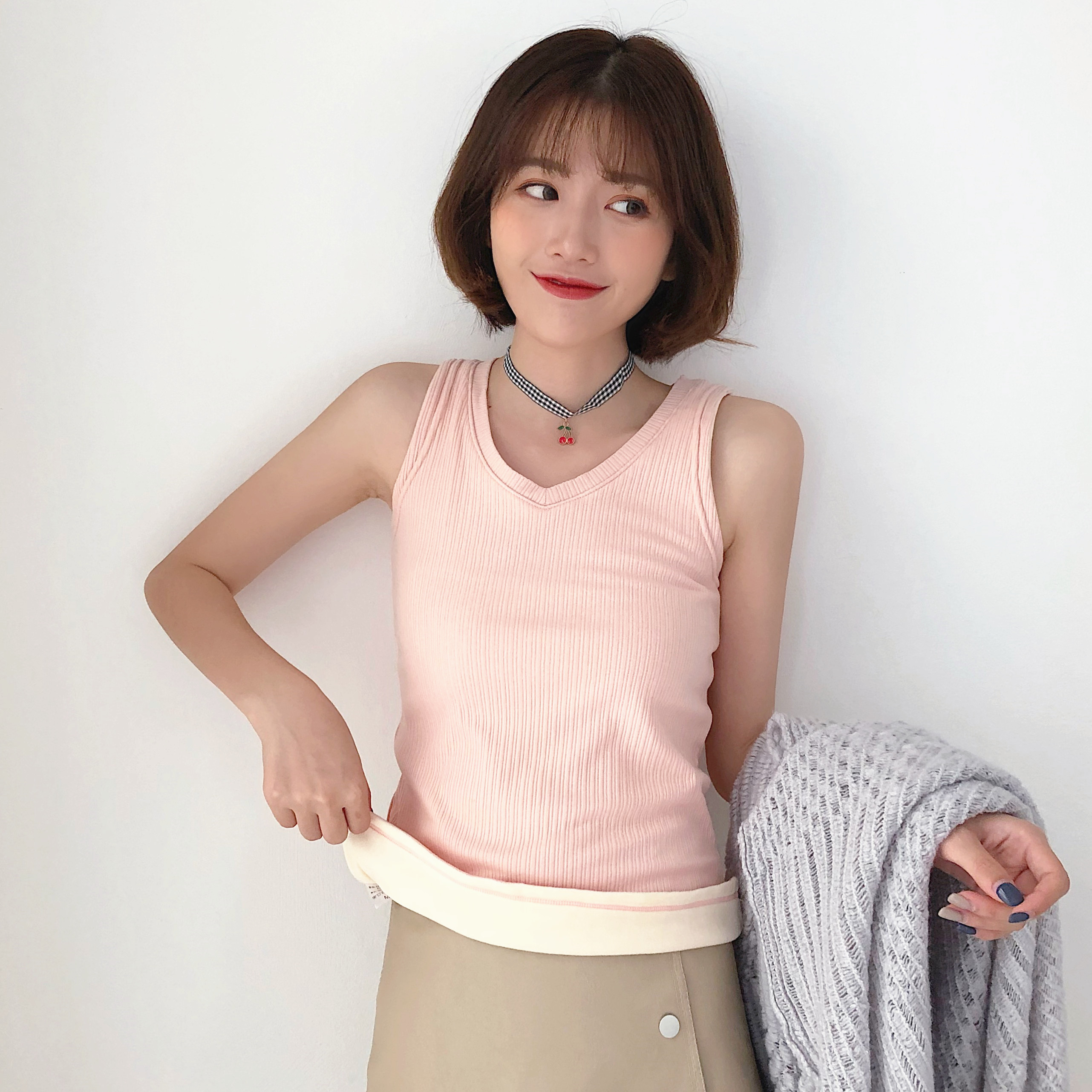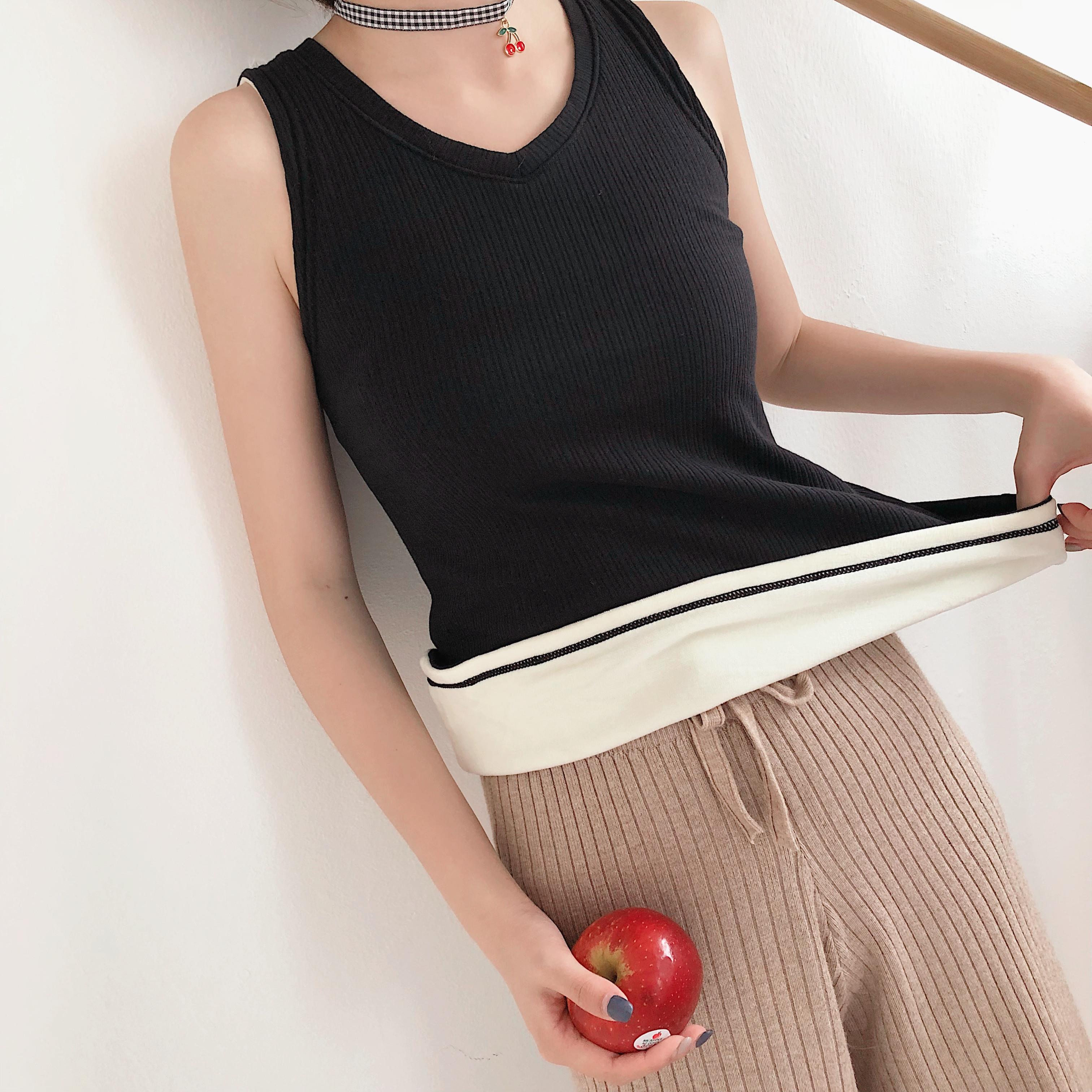 / 2018新款秋冬韓版加絨加厚保暖背心修身顯瘦外穿打底衫內衣上衣女