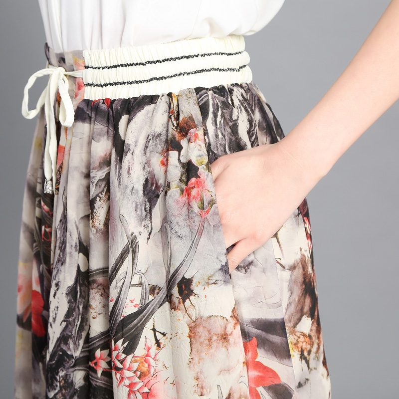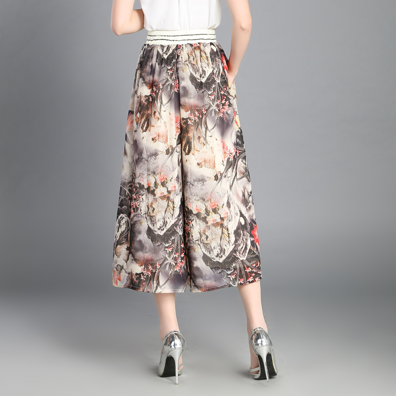 / 夏季雪紡印花闊腿褲女九分褲薄款韓版高腰寬松裙褲春休閑碎花褲裙