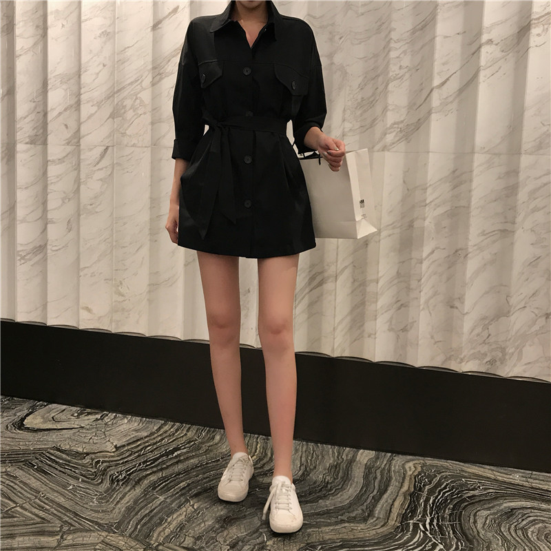 小香風時尚秋裝chic氣質中長款風衣兩穿翻領純色開衫綁帶顯瘦外套